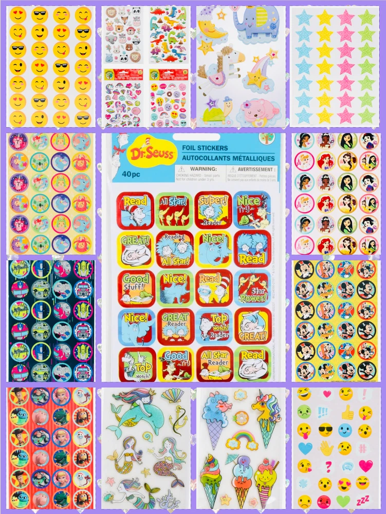 Fun Assortment of Puffy, Scrapbook, Cartoons, Bubble, Pop Up Stickers Packs For Everyone! You will receive 18+ Packs of beautiful colorful assortment. I have included a large variety of pictures of the assortment available. The pictures give you an idea of what you will be receiving. Please Note: You will not receive everything pictured. Please contact me with any special requests. This HUGE Variety of fun designs stickers can be used in parties, classroom, school and home, good for reward for students, potty training, adding inside a birthday card, game activities, entertaining toddlers, etc. Perfect Gifts for Kids & all Occasions: Can be given as a gift for kids, girls, boys, toddlers, teens, students, friends, and classmates, they will love it!