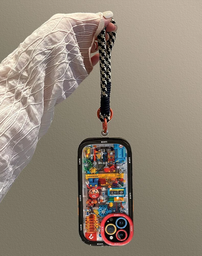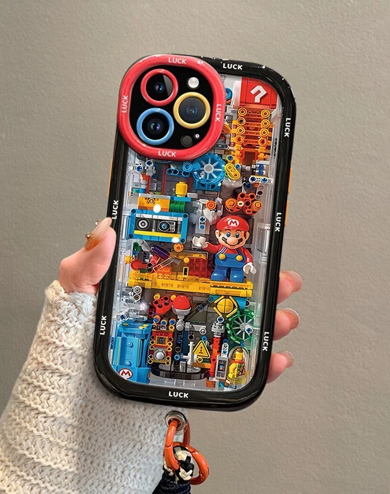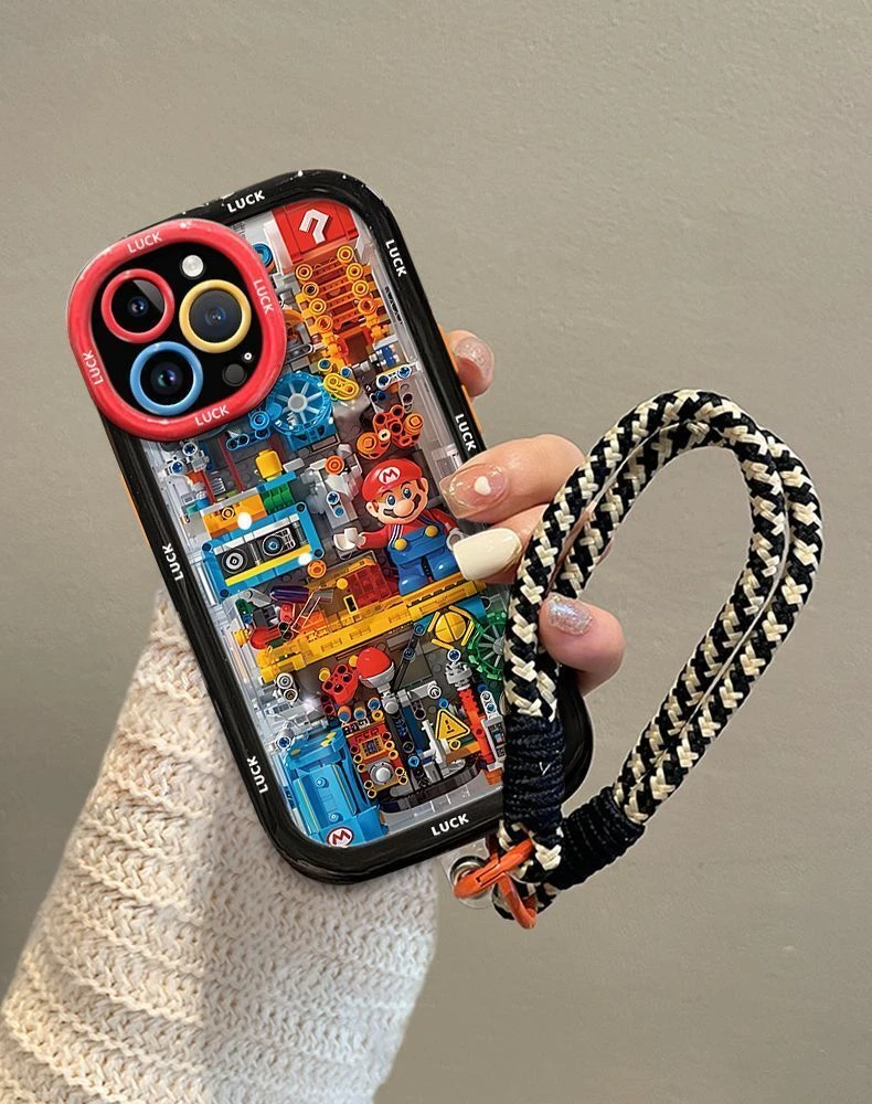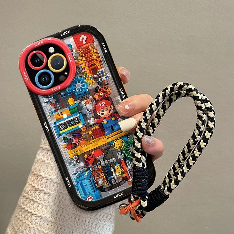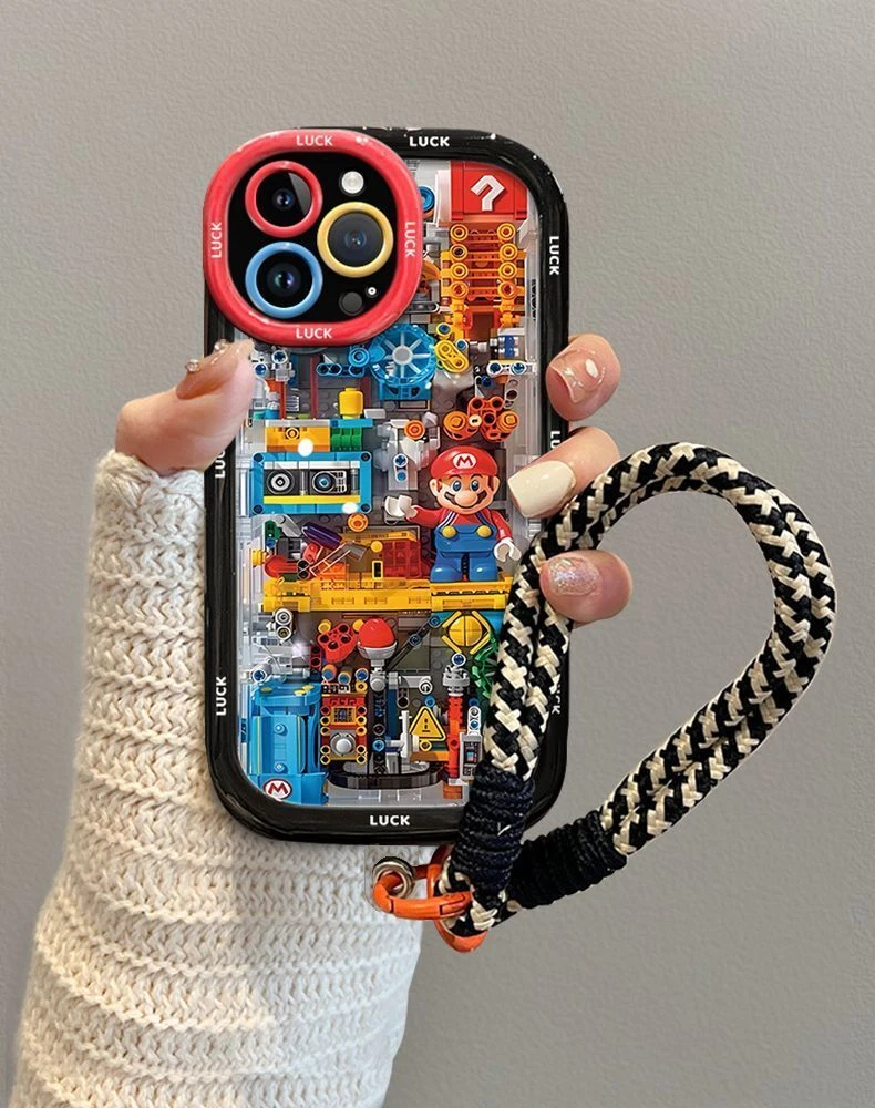 Cartoon building Mario0 Phone Case with lanyard For iPhone 15 14 13 12 Pro Max