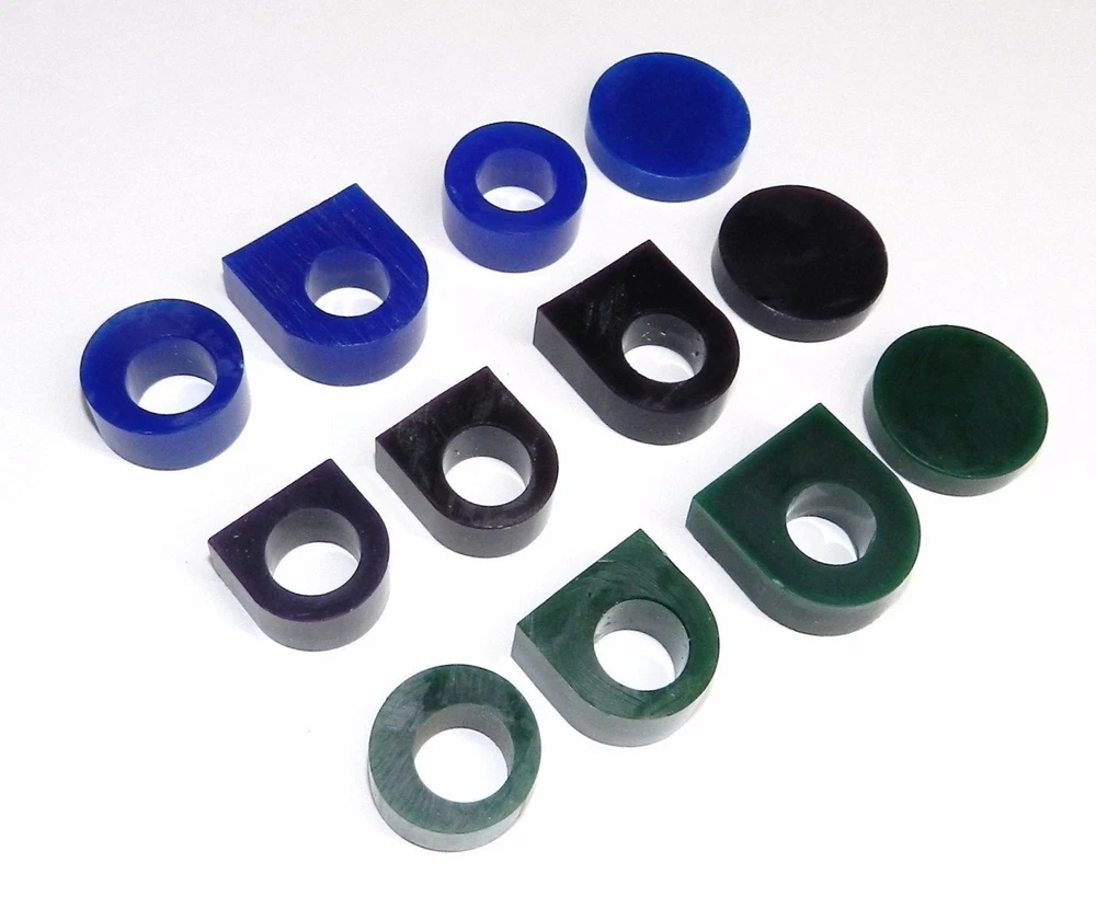 f erris ® FILE-A-WAX ASSORTMENT CARVING WAX RING TUBE & BLANKS - PRE-CUT ASSORTMENT OF 12 PIECES - 3 GRADES A variety of sliced Carving Wax Ferris File-A-Wax Brand, included in this set are 9 Wax Ring Tube Blanks in various shapes and 3 Round Solid Slices. The assortment contains 12 pieces in all 3 color hardness grades for your preference, in a variety of sizes and shapes. This wax can be carved, shaped & even machined to reproduce the most intricate design details. The Ferris file a wax is ideal for carving and producing a wide range of Jewelry pieces, in various shapes for lost wax castings including rings, earrings, pendants, bracelets and more. Ferris carving waxes are available in three hardness grades; all are included in this set. JETS Product # 2310-1912 Made by f erris File-A-Wax ® FERRIS FILE-A-WAX ® - WAX COLOR HARDNESS GRADES HARD-GREEN - The hardest and stiffest File-A-Wax, it resists flexing and is perfect for your most detailed carvings. MEDIUM-PURPLE - A regular grade ideal for general purpose carving where moderate flexibility is required. REGULAR-BLUE - The softest grade is formulated for outstanding flexible strength. The Blue carving wax can be carved into the thinnest of sections, while still preserving excellent detail. Contents: 12 Pieces - All 1/2” Thick - 4 Pieces of Each Grade - GREEN PURPLE BLUE - 2 Pieces: Round Off Center (Oblong) - 1 Piece: Round Center Hole - 6 Pieces: Flat Top Rings (In various Sizes) - 3 Pieces: Round Solid Slices SHIPPING: Via USPS First Class Mail NOTE: Visit JETSTOOLS our ebay Store to purchase individual Ring Tubes and many other Carving Wax shapes and sizes, along with Injection Waxes, Wax Working Tools and a selection of many more J ewelers E quipment T ools and S upplies . JETS Inc. 4B 413 CKSP Z M P