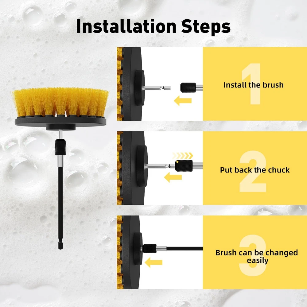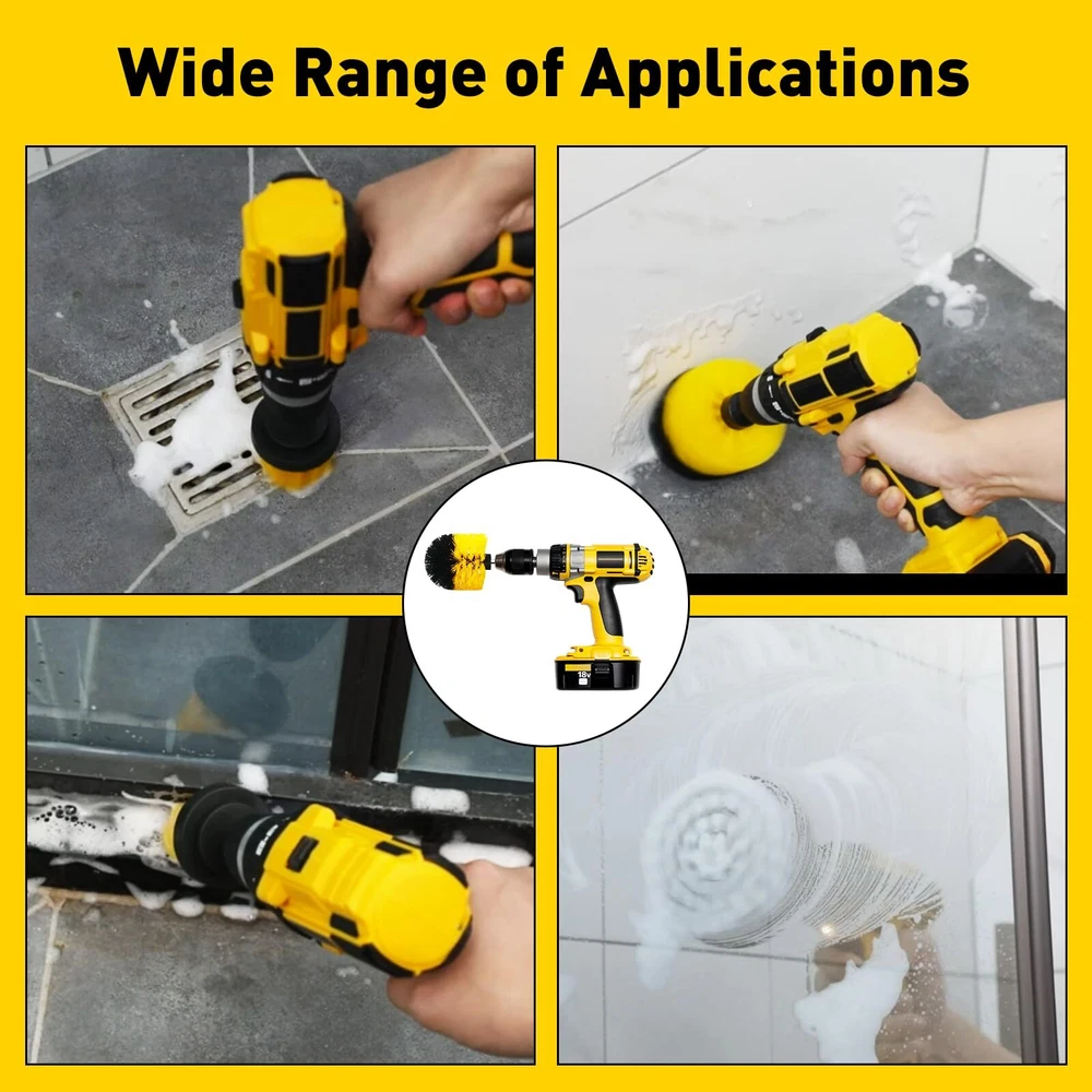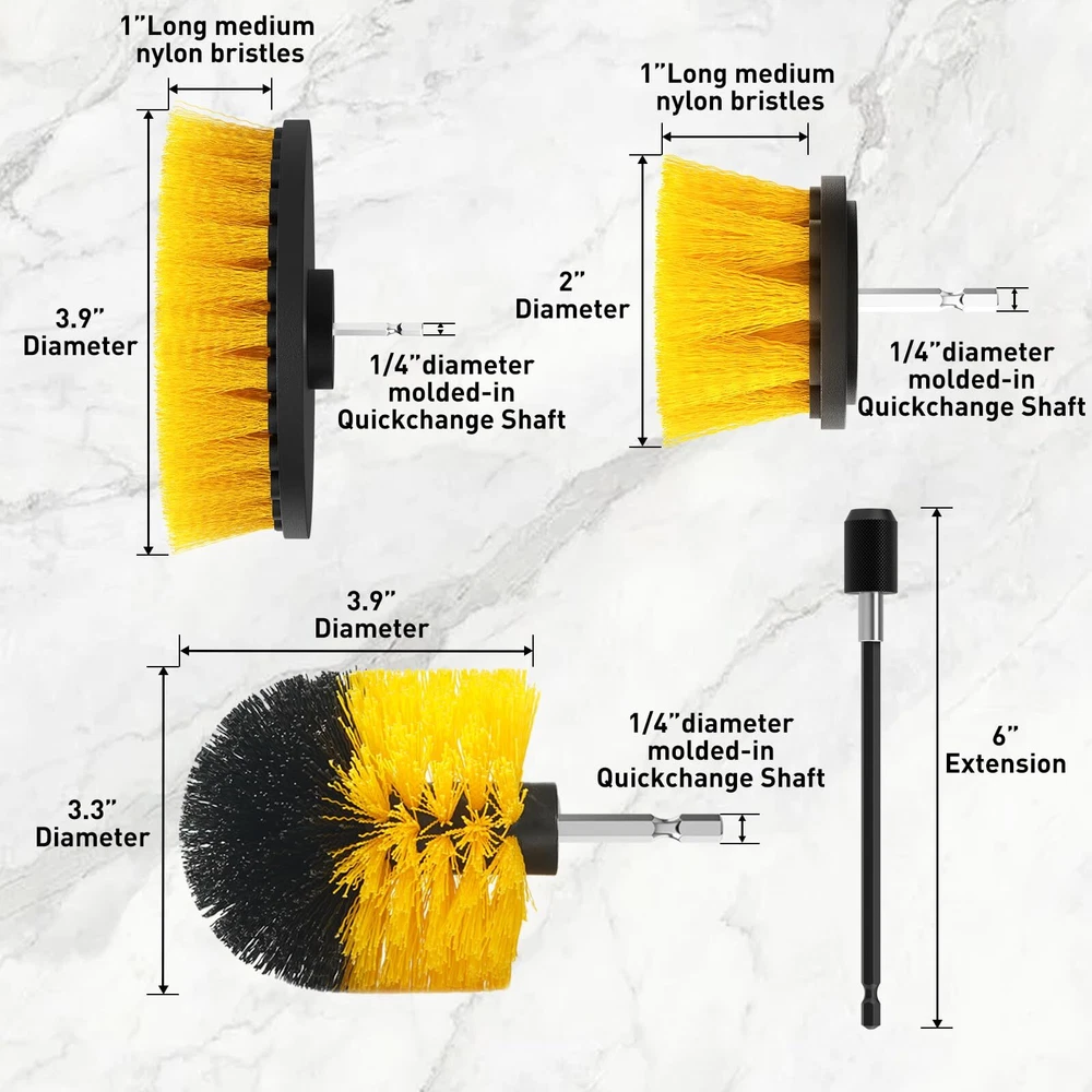 CasaCulina 4Pack Drill Brush Attachment Set, Scrub Brush for Drill, Power Scrubber Brushes with Extended Attachment, All Purpose Drill Brush Cleaning Kit for Grout, Floor, Tub, Shower, Tile, Car WIDE APPLICABILITY: The brush attachment for power drill can be used to easily clean bathroom surfaces, tiles, showers, bathtubs, toilets, wheels, kitchen worktops, and all kinds of other household and automotive surfaces, whether it's for routine maintenance or for deep cleaning, the kit can handle it. DURABLE MATERIAL: The drill brush set is made of high-quality nylon bristles and sturdy plastic plates to ensure that the drill brushes maintain good performance and long service life in the face of a variety of stubborn stains, and that they can be used to clean efficiently and effectively in a quick and easy way. MULTIPURPOSE SHAPE BRUSHES: Large diameter rounded brush head is suitable for cleaning large areas, small diameter rounded brush head is suitable for cleaning details; rounded ball brush head has a good curved surface for cleaning uneven surfaces and corners, such as bathtubs or wall corners. The different shapes of the brush head are versatile and can meet any deep cleaning needs. EXTENDED CONNECTING ROD: Stainless steel extension poles up to 6 inches long are designed to allow the user to easily access narrow or hard-to-reach areas such as grills, crevices, stove grills, drip pans, car footwells, or spaces between toilets and walls without the need to bend over or overextend their arms. 4 PACK CLEANING DRILL BRUSH SET: DRILL NOT INCLUDED, Includes 2" round brush, 4" round brush, ball brush and extend long attachment (size tips: 1/4-inch diameter connector between connecting rod and drill, compatible with most standard drills on the market, no need to purchase additional adapters, plug-and-play, convenient and fast) Shipping We offer FREE shipping on all orders! We use a selection of shipping services such as UPS, FedEx, USPS etc. We only ship to the lower 48 states, no APO/FPO addresses or PO Boxes allowed. Local pickups and combined shipping options are not provided at this time. Return You can return a product for up to 30 days from the date you purchased it. Any product you return must be in the same condition you received it and in the original packaging. Please keep the receipt. Payment We accept payment by any of the following methods: PayPal Please pay as soon as possible after winning an auction, as that will allow us to post your item to you sooner! Feedback Customer satisfaction is very important to us. If you have any problem with your order, please contact us and we will do our best to make you satisfied. Contact Us If you have any queries, please contact us via ebay. We usually respond within 24 hours on weekdays. Please visit our eBay store to check out other items for sale! Thank you for shopping at our store.