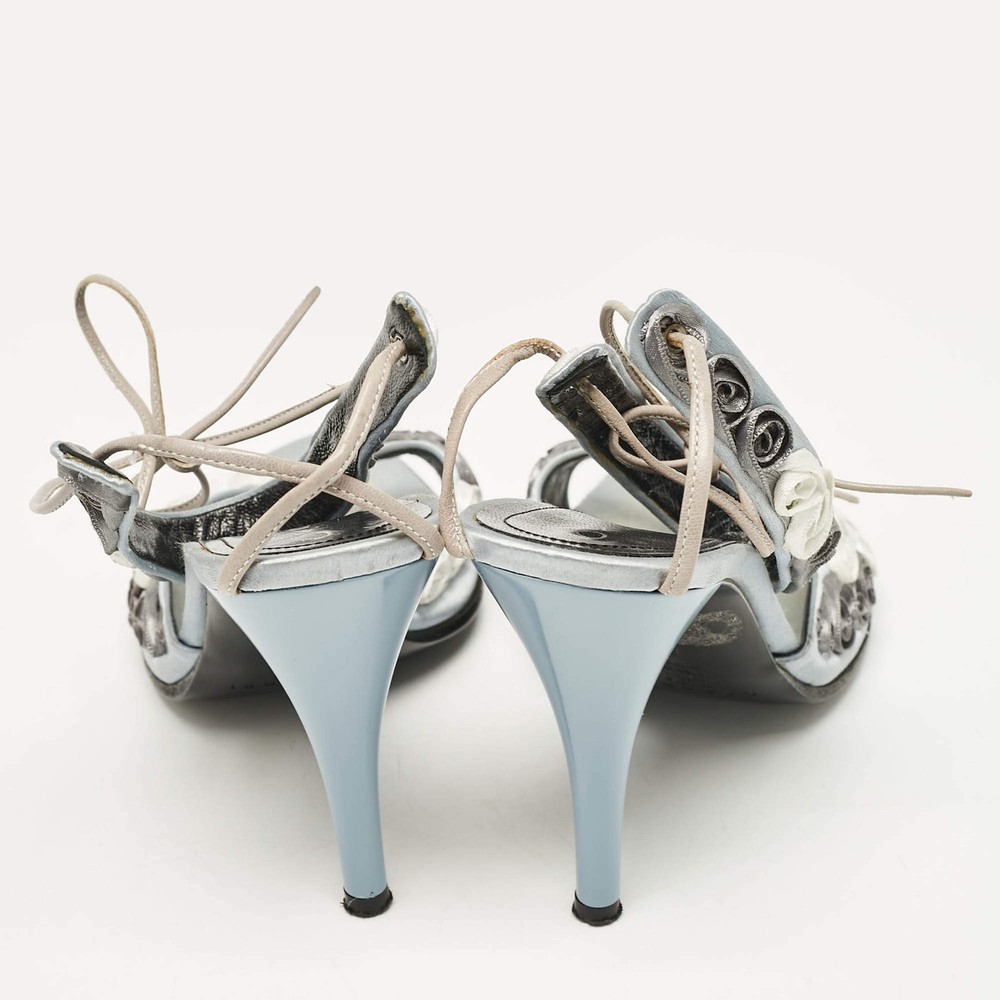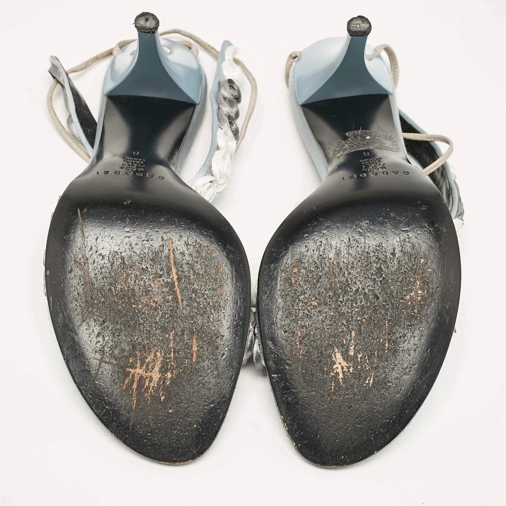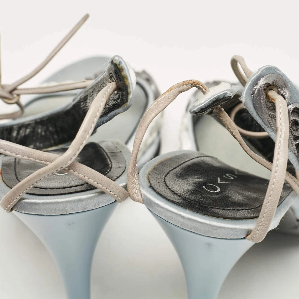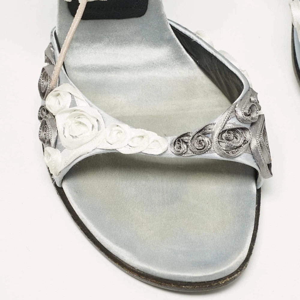 Casadei Grey Satin Floral Ankle Tie Up Sandals Size 38