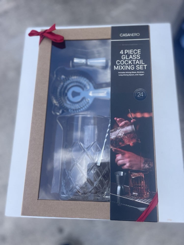 Casanero 4-Piece Glass Cocktail mixing set / Martini or Margarita Set Elevate your home bar collection with the Casanero 4-Piece Glass Cocktail Mixing Set, ideal for aficionados of both Martinis and Margaritas. Crafted from premium crystal and stainless steel with a clear glass finish, this set showcases an elegant etched pattern that adds a touch of sophistication to any gathering. The modern design is complemented by decorative features, including a convenient lid, ensuring your beverages remain fresh and pristine. The set includes four expertly designed cocktail glasses, perfect for those who appreciate the fine art of mixing. Whether you're stirring up a classic martini or a signature margarita, the Casanero glasses are tailored to enhance the presentation and taste of your favorite spirits. With its durable construction and timeless style, this set is a must-have for any serious entertainer or cocktail enthusiast. Condition : Brand New and 100% Authentic Totally new , with tags, original product Suggestions Review and observe the published photos of the product Shipping Your item will be shipped within 1-3 business days after receiving your cleared payment. Delivery time depends on destination and other factors. Return We accept returns for any reason within 30 days after the buyer receives the item(s). We are not responsible for any return or exchange after the warranty period has expired. No exceptions. The return policy is a little different for different circumstances: If we send you the wrong item or the item is damaged the time you receive it, we will cover all the costs associated with return or exchange. But it is required that you provide a photo to show us the problem first. All the return/exchange items must be in original package. If buyer doesn’t like the item or purchases the wrong item by mistake.Buyer is responsible About Us Your satisfaction is our top priority.We stand behind all products that we sell.The only thing we want to give to our customer is the best buying experience.So we will try our best to do everything well. In order to get a prompt response and communication, we recommend you contact us by Ebay Message.All emails will be replied within 1 business day. However, we did receive some customers complain that they have not received our emails. Mostly because our emails get into the SPAM/JUNK mail box. So please check those mail folders also or use the contact seller on your auction page to contact us directly.