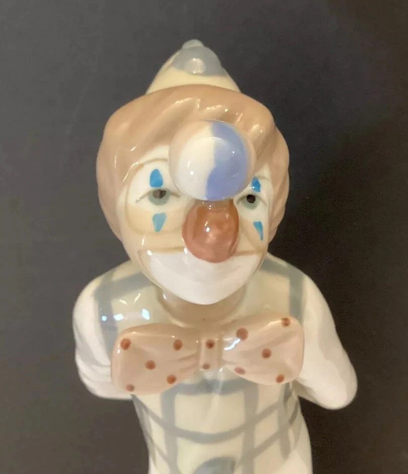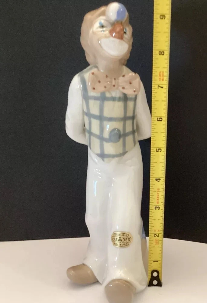 Add a touch of whimsy to any room with this beautiful Casades Circus Clown statue figurine. Crafted in Spain from high-quality porcelain, this medium-sized figurine stands at 9.5 inches tall and features a glossy finish. The colorful design and art deco style make it a perfect addition to any decor. The statue depicts a cheerful clown with a musician theme, making it a great gift for adults and kids alike. It's perfect for all occasions and will add a touch of charm to any room. This figurine is a must-have for collectors of decorative collectibles and sculptures.