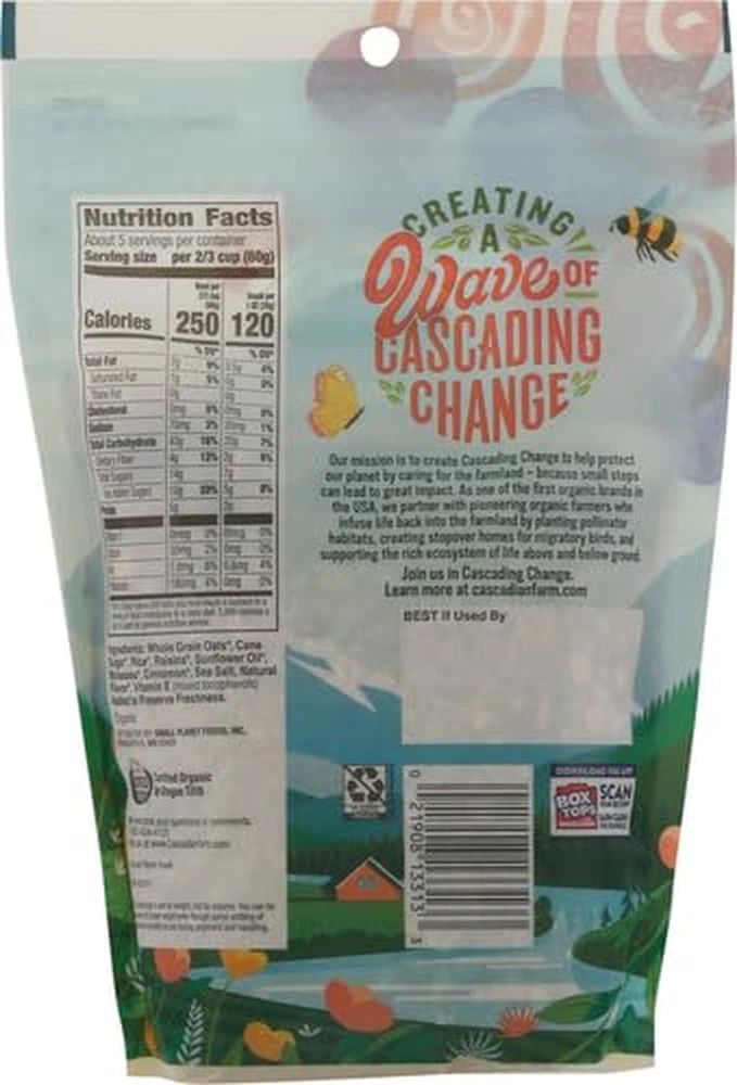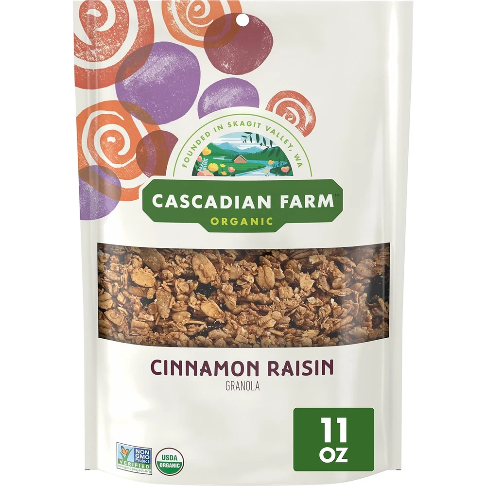 Store New Arrivals Add to Favorite View Feedback Contact Cascadian Farm Organic Granola, Cinnamon Raisin Cereal, Resealable Pouch, 11 Oz. Description Item model number S-PL-11802 Product Dimensions 3 x 6.5 x 9.5 inches; 11.2 ounces Country of Origin USA Age Range (Description) Adult Diet Type Vegetarian Flavor Cinnamon Raisin Item Form Granola Brand Cascadian Farm Manufacturer GENERAL MILLS SALES INC. CINNAMON RAISIN GRANOLA: Organic granola made with whole-grain oats, crisp rice, raisins and cinnamon; Comes in a convenient, resealable pouch for maximum freshness and easy opening NON-GMO: USDA certified organic non-GMO granola WHOLESOME INGREDIENTS: Contains 32 grams of whole grain and four grams of fiber per serving CROWD-PLEASING GRANOLA: Snackers of all ages will love the sweet and satisfying crunch of this exceptional granola CONTAINS: 11 oz Cascadian Farm Organic Cinnamon Raisin Granola comes with delicious whole-grain oats, crisp rice, plump raisins and tasty cinnamon. With 32 grams of whole grain* and 4 grams of fiber per serving, this organic granola helps start the day right. Serve this granola cereal with milk or on top of your favorite Greek yogurt, or enjoy it by the handful on your next hike. Now in a convenient resealable pouch. Keep an extra pouch in your pantry for a crunchy anytime snack. *32g whole grain per serving. At least 48g recommended daily. Cascadian Farm has spent more than 50 years working to protect our planet through actions like planting pollinator habitats, helping farmers build healthy soil, and integrating climate-smart crops into our products. Step- by- step, we are reimagining the relationship between food, farmland, nature & communities, seeking to drive and inspire meaningful change along the way. ABOUT US We offer the best prices around on high quality products. Our E-store includes media such as books, movies, music and games while offering electronics, toys, sporting apparel, clothing, tools, general home, garden items and more. SHIPPING We are always working hard to ensure your package arrives as soon as possible. Please understand that some factors like weather, high postal traffic, and the performance of shipping companies are outside of our control. We offer free shipping to the lower 48 states and ship within 2 business days of payment, usually sooner. We do not accept P.O. Boxes. Please provide a physical address. RETURNS We offer a 30-Day Return Policy on items which you are not completely satisfied with. You have the option for a full-refund or an exchange of the item. No returns are available on items shipped outside of the USA. PAYMENT We accept PayPal. CONTACT US This page content is yet to come Please ad us to your favorite seller and visit again later Thank You CUSTOMER SATISFACTION We try our very best to make sure every customer is completely satisfied. If there's a problem, message us! We're happy to help.