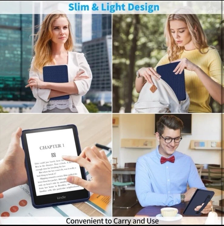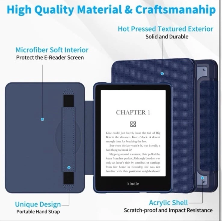 Case for 6.8" Kindle Paperwhite(11th Generation 2021 Release), Sanyetral Slim Fabric Cover with Hand Strap Auto-Wake/Sleep for Kindle Paperwhite Signature Edition, Not fit Sony iPad Nokia - Dark Blue