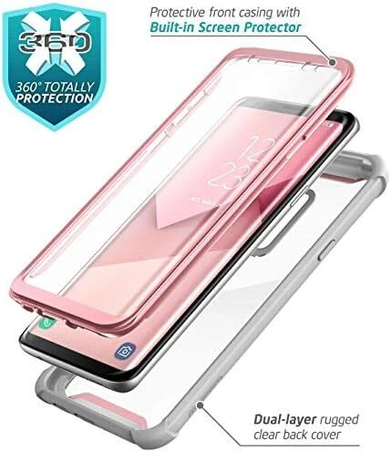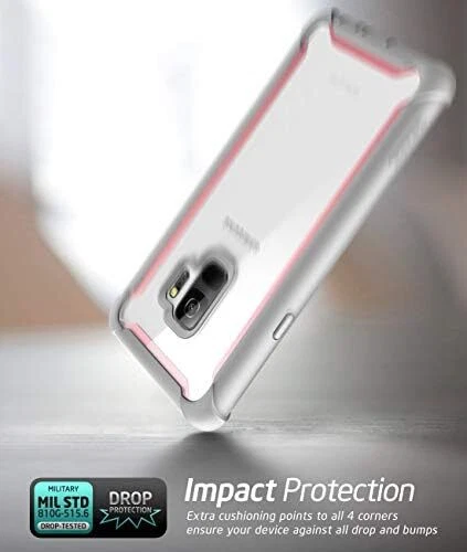 Case for Galaxy S9 2018 Release, Ares Full-body Rugged Clear Bumper Case with Built-in Screen Protector (Black/Blue) 360-degree, full-device protection.,Screen protector built-in, prevents scratches and screen cracks while remaining fully touch-sensitive.,Slim build and clear back plate makes it easy to slip into pockets or purses.,Augmented drop-resistant bumper made of shock-absorbent TPU materials.,Compatible with Samsung Galaxy S9 only. Not for Samsung Galaxy S8/ S8+/ S9+.