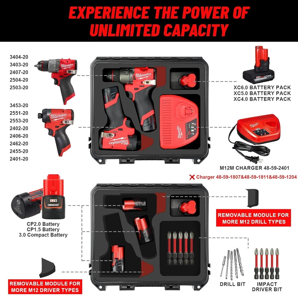 Case for Milwaukee M12 Impact Driver&Drill Set -Waterproof Tool Box w/Removable