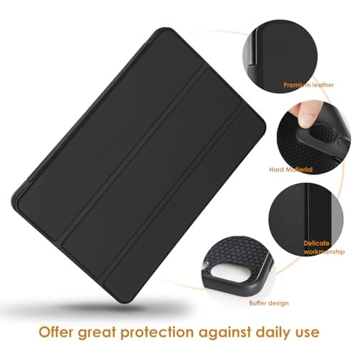 Case for Samsung Galaxy Tab S9 FE 10.9" Shockproof Leather Cover with Auto Sleep Designed specifically for Samsung Galaxy Tab S9 FE 10.9 inch for a perfect fit. Constructed with premium waterproof PU leather exterior and anti-slip interior for durability and grip. Supports two adjustable viewing angles for versatile use, including movie watching and typing modes. Precise cutouts provide easy access to charging port, camera, speakers, and buttons without removing the case. Features auto sleep/wake function and a magnet-secured closure for convenience and security.