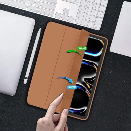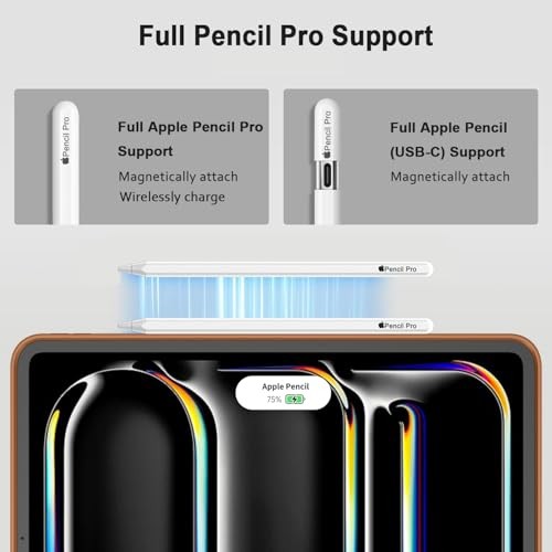 Case for iPad Pro 13 Inch M5/M4 2024/2025 with Kickstand & Pencil Holder Compatible with iPad Pro 13 inch (M5) 2025 (A3360, A3361, A3362) and iPad Pro 13 inch (M4) 2024 (A2925, A2926, A3007); check model number on the device bottom. Supports Pencil Pro and Pencil (USB-C) with a magnetic charging side groove and secure magnetic clasp. Features auto wake/sleep function with a powerful magnet for easy on/off and secure closure. Constructed with PU exterior, microfiber lining, and soft TPU back for full protection against shocks, drops, and scratches. Offers dual standing positions for adjustable viewing angles.