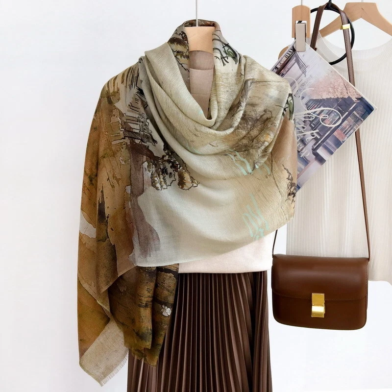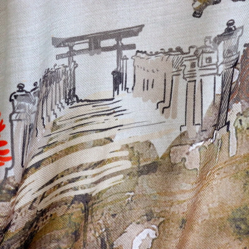 Twill Silk ~18 Momme~ Double Face Scarf Stole Tower Print Square Shawl 35"
