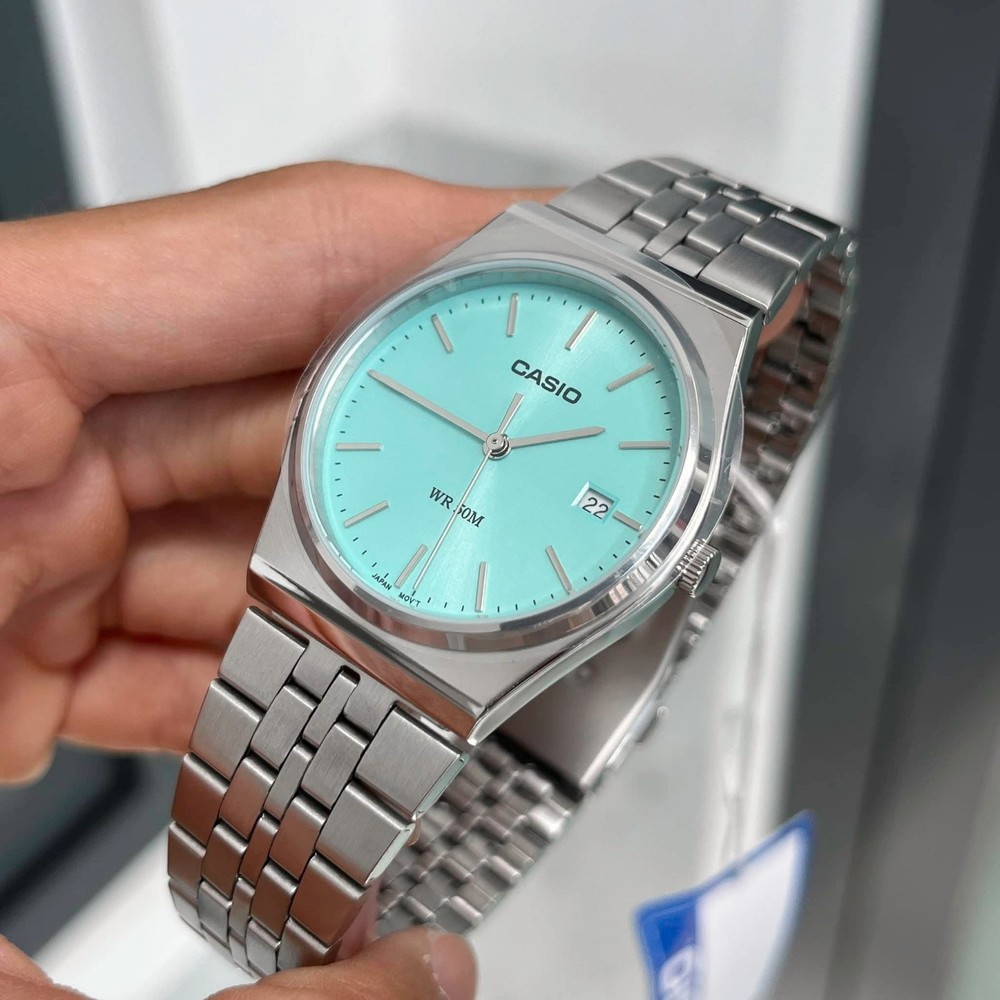 ✨ 100% ORIGINAL CASIO – BRAND NEW ✨ Classic elegance meets modern style. The Casio MTP-B145D-2A1 features a stunning Tiffany blue dial, stainless steel case & bracelet, and reliable Japanese quartz movement. Perfect for daily wear or gifting. 🔹 Product Details Brand: Casio Model: MTP-B145D-2A1 Movement: Quartz (Japan Movement) Dial Color: Tiffany Blue Case Material: Stainless Steel Bracelet: Stainless Steel Glass: Mineral Crystal Water Resistance: 50 meters (5 ATM) Display: Analog with Date Case Size: Approx. 35mm Gender: Men / Unisex 🔹 What You Get ✔ Brand new Casio watch ✔ Original Casio box ✔ User manual ✔ Tags intact 📦 Shipping Fast & secure shipping via FedEx / DHL Ships from Kuwait Worldwide shipping available ⚠️ Note Import duties, taxes, or customs fees (if any) are the buyer’s responsibility. 💯 Authenticity Guaranteed Buy with confidence from a trusted seller.