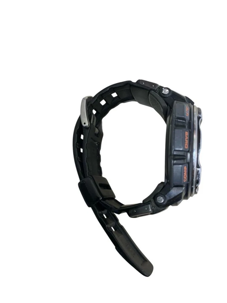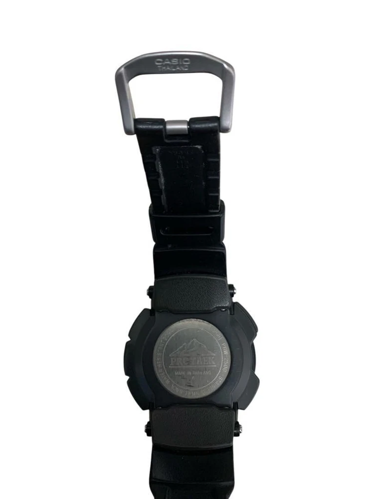 Brand: Casio Department: Men Features: Water-Resistant Case Size: 56 mm Display: Digital With Original Box/Packaging: No Customized: No Watch Shape: Round Band Material: Resin Band/Strap: Two-Piece Strap Reference Number: PRW2500 Band Color: Black Seller Warranty: No Case Color: Gray Dial Color: Gray Movement: Quartz With Papers: No Type: Wristwatch With Manual/Booklet: No Model: Casio PRO TREK