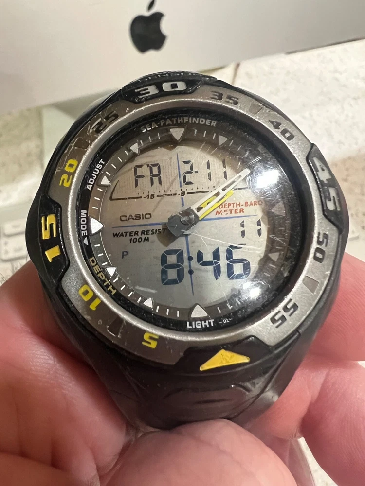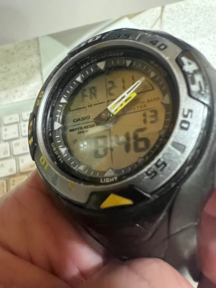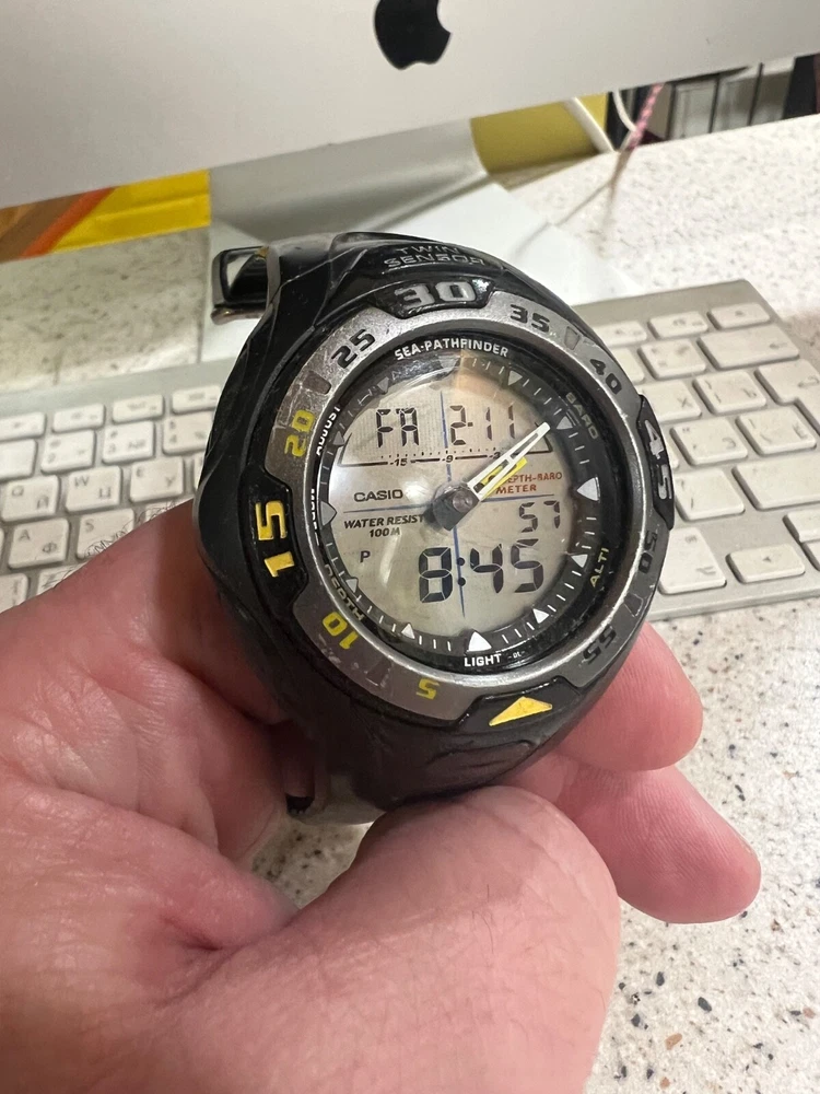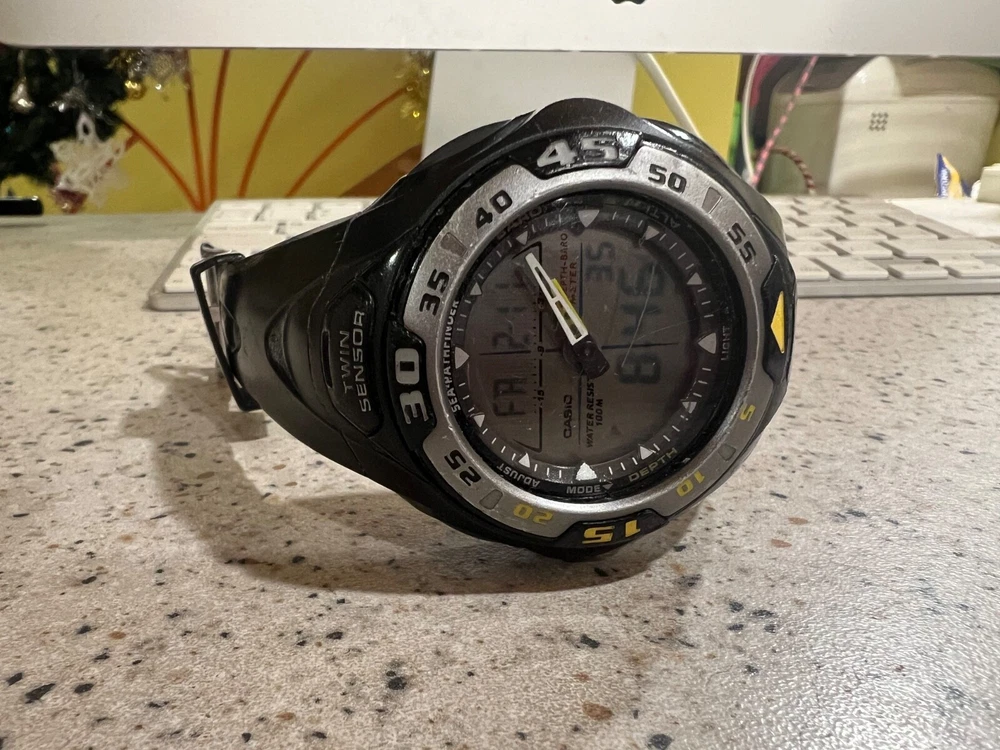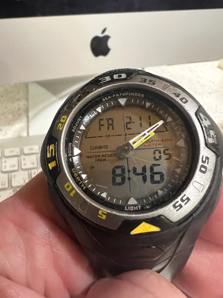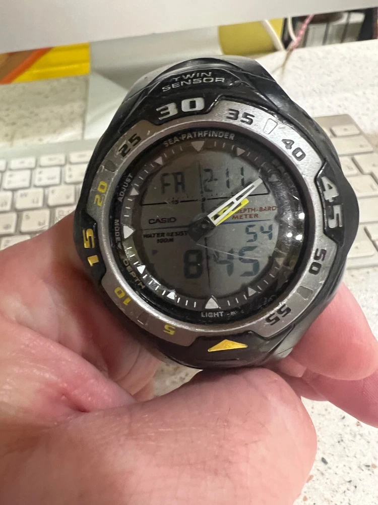 Style:Diver, SportType:WristwatchReference Number:SPF60SMovement:QuartzDepartment:MenFeatures:12-Hour Dial, Alarm, BacklightSeller Notes:“Condition you can see on the photos Mechanism and electronics working good”Brand:CasioCustomized:NoModel:Casio Sea Pathfinder
