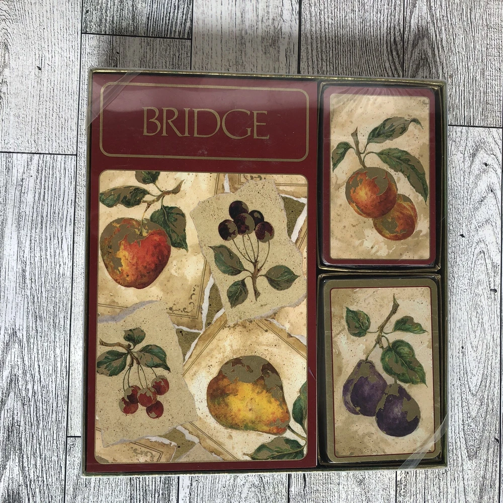 This vintage Caspari playing card deck and score pad set is a must-have for any card game enthusiast. The deck features a beautiful design inspired by The Golden Fruit theme, while the score pad provides a convenient and stylish way to keep track of your progress. Crafted with high-quality materials, this vintage deck is perfect for collectors and players alike. Whether you're looking to add to your collection or just starting out, this Caspari playing card deck and score pad set is sure to impress. Conditions: The item is listed as used because the main box is not sealed. However, the decks of cards are new and sealed and the score pad has never been used. Please look carefully at all pictures and item description before making your purchase. This item is sold as is, item in photos is the exact item you are purchasing. Comes from a smoke-free and pet-free home. Always ship fast! Offers Welcome! Check my other listings for more great deals! Thank you for stopping by and happy shopping!