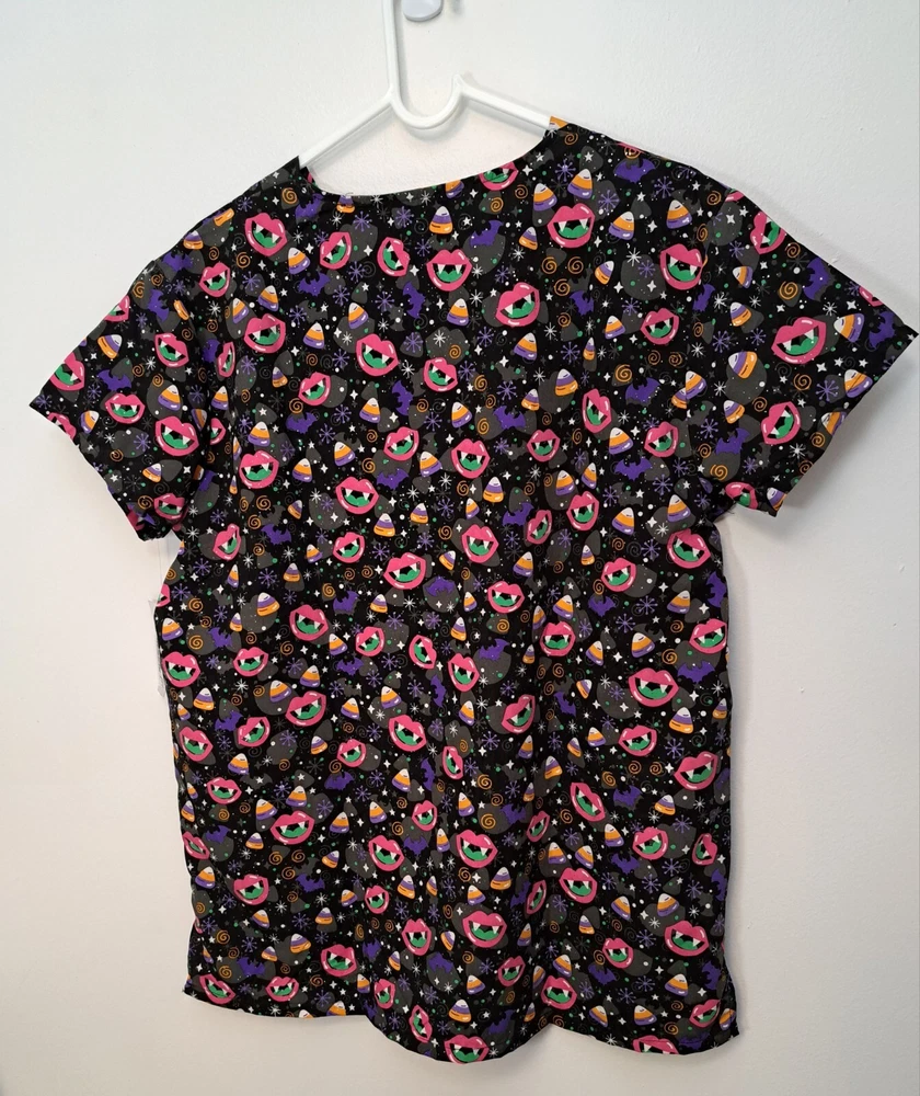Fabric is 100% polyester. Chest (armpit to armpit): 22 inches. Length (collar to hem): 27 inches. 2 pockets. RN#142690