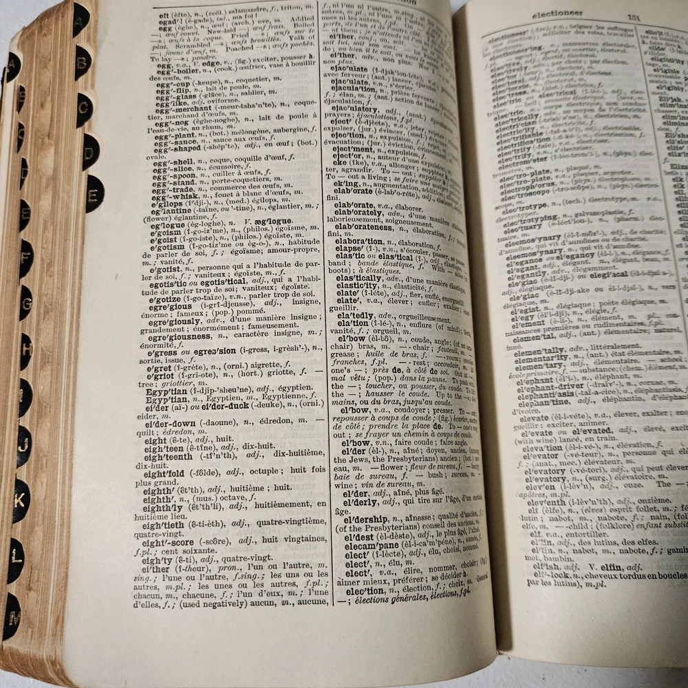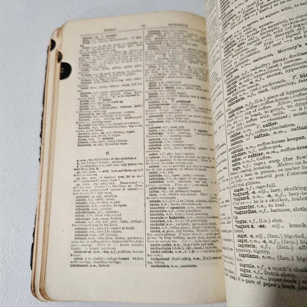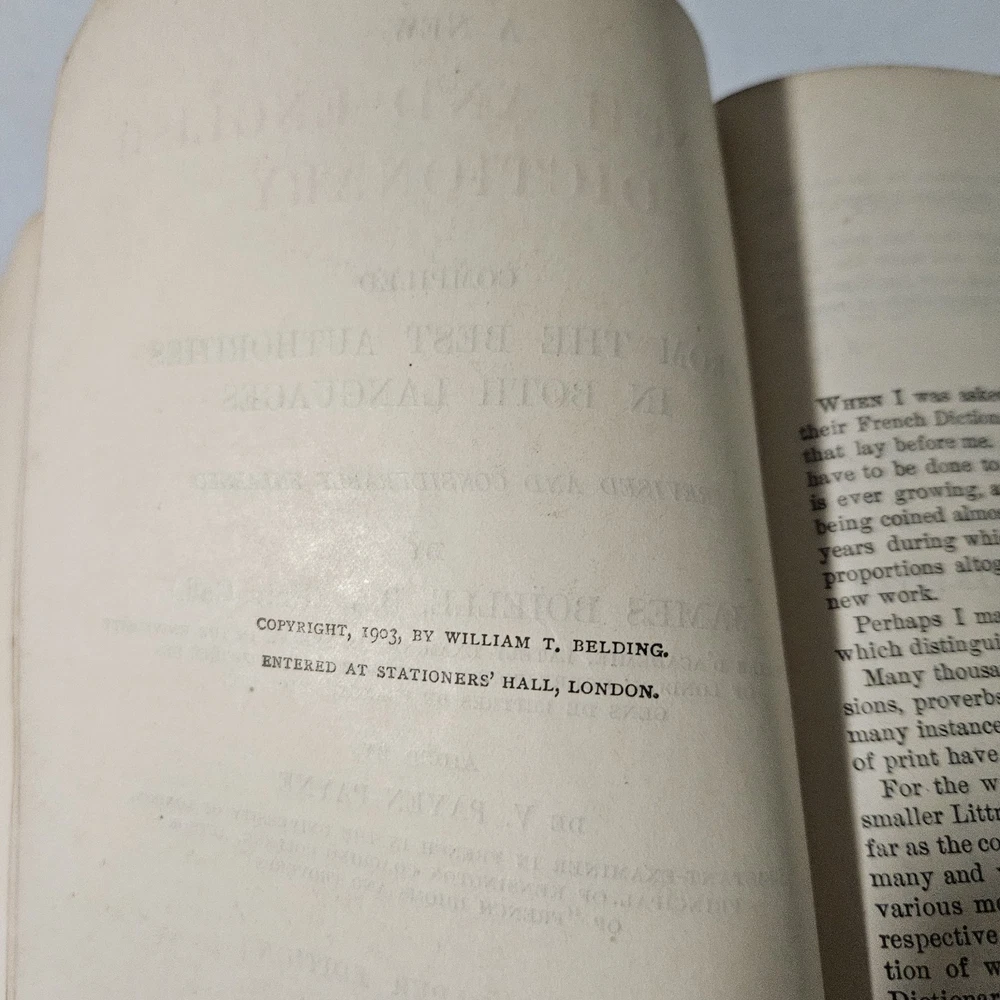 Publication Name: cassell's new french english dictionary Source Language: English Country of Origin: United States Language: English, French Publication Year: 1903 Type: Bilingual Dictionary Author: boielle Subject Area: English, French