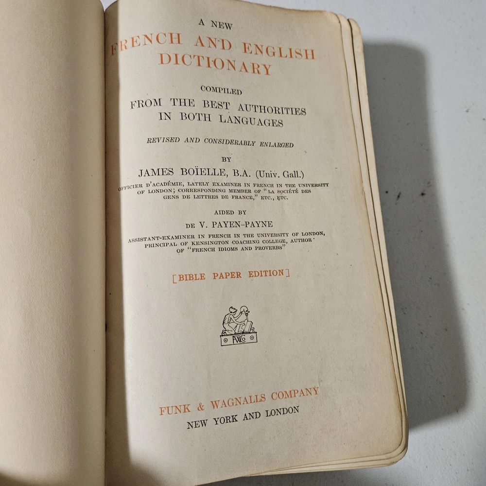 Cassell's New French English Dictionary 1903 Copyright Bible Paper Edition