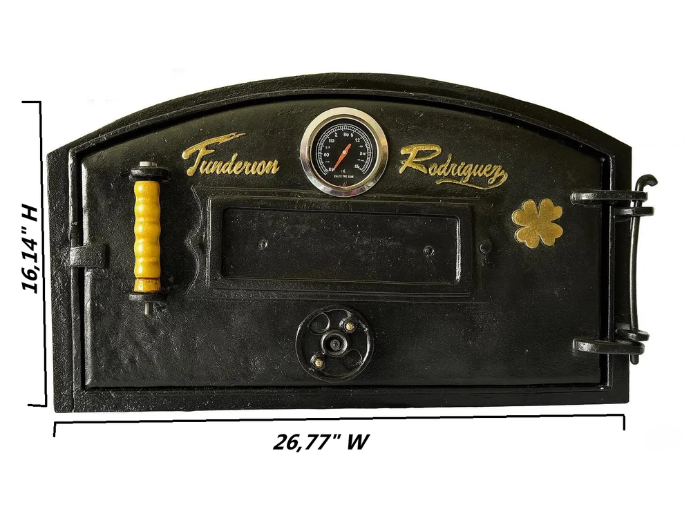 ✅ Description Upgrade your clay oven with this cast aluminum door , combining durability and heat efficiency with a stylish design. Featuring a built-in thermometer , it ensures accurate cooking temperatures for your favorite recipes. Perfect for wood-fired ovens and outdoor kitchens, this oven door delivers strength, longevity, and performance in every use. Specifications: Material: Cast Aluminum Color: Black Dimensions: 26.77" W x 16.14" H x 4" D Features: Thermometer, Heat-Resistant Construction ✅ Highlights Clay oven door made of durable cast aluminum for lightweight strength Includes built-in thermometer for accurate temperature control Designed for wood-fired ovens , retains heat effectively Rustic style adds a traditional look to your outdoor kitchen Size: 26.77" W x 16.14" H