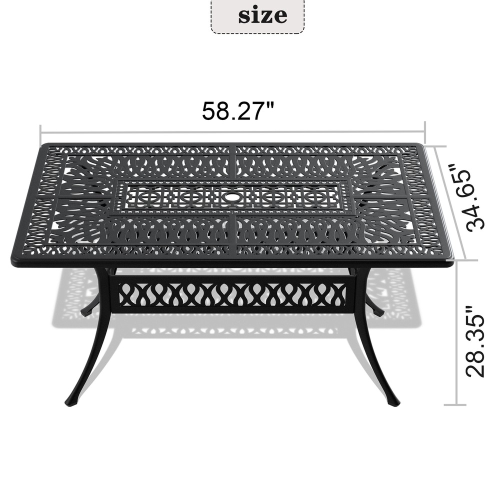 Cast Aluminum Patio Dining Table 58x35 Inch Black Frame with Umbrella Hole