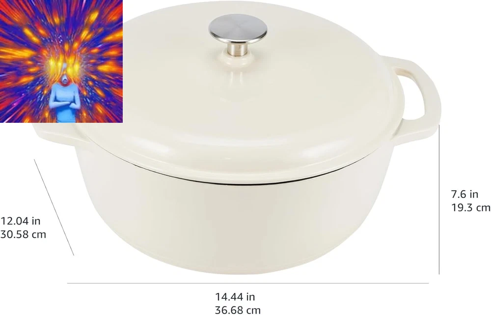 Store New Arrivals Add to Favorite View Feedback Contact Cast Iron Dutch Oven Pot with Lid, Enameled, Round, Dual Handles, Heavy-Duty, Large, 7.3-Quart, White Description Item model number SX-75QTW Item Weight 16.29 pounds Capacity 7.3 Quarts Temperature Rating 500 Degrees Fahrenheit Color White Lid Material Cast Iron Material Cast Iron Country of Origin China Is Dishwasher Safe No Global Trade Identification Number 06939556100268 Is Oven Safe Yes Shape Round With Lid Yes Finish Type Enameled Product Dimensions 14.4"W x 7.6"H Product Care Instructions Hand Wash Only Size 7.3-Quart Dutch oven in White; ideal for roasting, baking, sautéing, cooking, and more Heavy-duty cast iron retains heat well and distributes it evenly; smooth enamel finish provides lasting strength Oven safe up to 500 degrees F Larger 7.3-quart capacity serves 6+ people; perfect for stews or roasts Hand wash only; avoid metal utensils and wash in warm, soapy water for best results; avoid citrus-based cleaners Looped side handles for easy lifting; fitted lid traps in heat and moisture for enhanced results Product Dimensions: 14.4 x 12 x 7.6 inches (LxWxH) Product Description Amazon Basics Enameled Cast Iron Dutch Oven, 7.5-Quart, White From the Manufacturer Amazon Basics ABOUT US We offer the best prices around on high quality products. Our E-store includes media such as books, movies, music and games while offering electronics, toys, sporting apparel, clothing, tools, general home, garden items and more. SHIPPING We are always working hard to ensure your package arrives as soon as possible. Please understand that some factors like weather, high postal traffic, and the performance of shipping companies are outside of our control. We offer free shipping to the lower 48 states and ship within 2 business days of payment, usually sooner. We do not accept P.O. Boxes. Please provide a physical address. For shipping outside of the continental USA, we only use eBay's Global Shipping Program.The item is shipped to KY and then sent to the rest of the world. International customers are responsible for all duties and taxes. Continue to check out in order to calculate costs for shipping the item to your country. Messages regarding eBay's Global Shipping Program MUST be directed at eBay EXCLUSIVELY. RETURNS We offer a 30-Day Return Policy on items which you are not completely satisfied with. You have the option for a full-refund or an exchange of the item. No returns are available on items shipped outside of the USA. PAYMENT We accept PayPal. CONTACT US This page content is yet to come Please ad us to your favorite seller and visit again later Thank You CUSTOMER SATISFACTION We try our very best to make sure every customer is completely satisfied. If there's a problem, message us! We're happy to help. WE ACCEPT