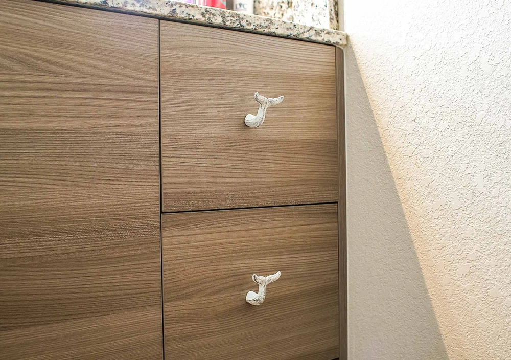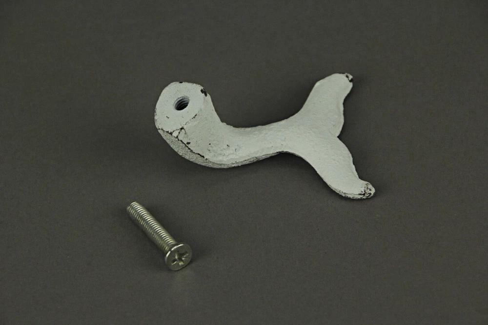 Overall Size - Each pull measures 2.25 inches in length, 1.75 inches in width, and protrudes 0.75 inches, providing a substantial grip for effortless use. Durable Design - Crafted from robust cast iron, these pulls feature a charming flipped whale tail shape, infusing coastal character into furniture, drawers, and more, offering both functionality and style. Rustic Finish - Embracing a distressed white faux aged painted patina, these pulls seamlessly blend with various home decor settings, adding a touch of timeless coastal elegance to your space. Our eBay Store About Us Add to Favorite Sellers Set of 12 Distressed White Cast Iron Whale Tail Drawer Pulls Decorative Bathroom Cabinet Knobs Coastal Kitchen Handle Decor Accessories - 2.25 Inches Long Overall Size - Each pull measures 2.25 inches in length, 1.75 inches in width, and protrudes 0.75 inches, providing a substantial grip for effortless use. Durable Design - Crafted from robust cast iron, these pulls feature a charming flipped whale tail shape, infusing coastal character into furniture, drawers, and more, offering both functionality and style. Rustic Finish - Embracing a distressed white faux aged painted patina, these pulls seamlessly blend with various home decor settings, adding a touch of timeless coastal elegance to your space. Easy Installation - Each pull effortlessly attaches to furniture with a single screw, included for convenience. For wall mounting as decorative hooks, additional hardware is required (not included), enabling versatile use in homes, hotels, and lodges. Sea Style - These pulls serve as fun and unique accent pieces in dresser and nightstand drawers, end tables, cabinet and cupboard doors. Moreover, when displayed on the wall as decorative hooks, they transform spaces with their coastal charm, making them ideal for towels, decor, and more. Enhance the charm of your home effortlessly with this 12-piece set of cast iron whale tail drawer pulls. These versatile pieces instantly elevate your decor, whether adorning dressers, nightstands, end tables, cabinets, or closet doors. Alternatively, mount them on your walls as decorative hooks for towels and other items, creating a cohesive coastal aesthetic. Crafted from durable cast iron, these pulls boast a distressed white painted finish, exuding timeless coastal elegance. Their 2.25-inch length, 1.75-inch width, and 0.75-inch depth make them both functional and stylish. Each pull attaches easily with a single screw, included for furniture use. For wall mounting, additional hardware is needed. These whale tail drawer pulls not only offer practicality but also serve as eye- catching decorative accents. Their nautical theme adds a touch of seaside charm to any room, transforming ordinary furniture and walls into focal points. Ideal for kitchens, bathrooms, or any space in need of a coastal vibe, this set effortlessly harmonizes functionality and style. Instantly revitalize your decor with these charming, coastal-inspired drawer pulls, perfect for anyone seeking a quick and impactful home upgrade. Product Details Color White Height 0.75 Length 2.25 Weight 1.2 LB