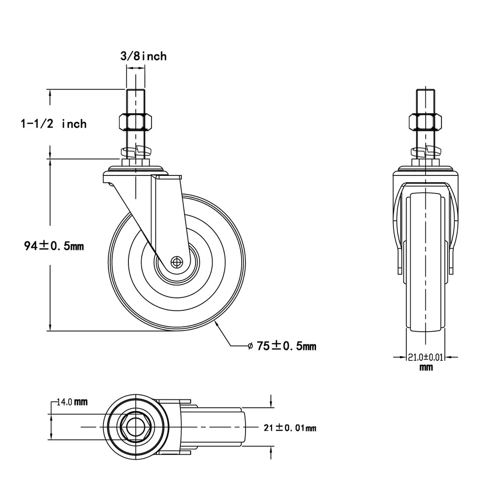 Store New Arrivals Add to Favorite View Feedback Contact Caster Wheels 3 Inch Set of 4 Heavy Duty Threaded Stem Casters 3/8"-16 X 1-1/2" Description Item model number 3/8" -16 x 1-1/2"- No Brake Mounting Type Stem Mount Color Gray Material Rubber and Steel Country of Origin China Item Weight 0.88 Kilograms Model 3/8" -16 x 1-1/2"- No Brake Package Dimensions 7.05 x 4.8 x 3.86 inches; 1.94 Pounds brand Unbranded PACKAGE: Included 4 casters(Stem Diameter 3/8", Stem Length 1-1/2") BIG TIRE: 3'' Diameter Wheel LOAD CAPACITY: Total 720 lbs (180 lbs each caster) MATERIALS: Premium Rubber/ Steel UNIVERSAL:Perfect casters replacement for your wire rack shelving units. Also It can make your workbench, freezer, grill, fire pit, cooler, washer, dryer,grinder/ drill press stand,any other gadget you need move easily and roll smoothly, which save your labor and time. Product Description Finnhomy Swivel Caster Wheels-Heavy duty and anti-wear. Perfect caster wheels replacement for your wire rack shelving units. Also It can make your workbench, freezer, grill, fire pit, cooler, washer, dryer,grinder/ drill press stand,any other gadget you need move easily and roll smoothly, which save your labor and time. The structure chart of 3/8"- 16x1-1/2" : Package content: 4 x Caster Wheels with Screws Material: Rubber and Steel Wheel Size: 3'' Diameter Bearing: Roller Features: Heavy duty and anti-wear Add to Cart Add to Cart Add to Cart Add to Cart Add to Cart Add to Cart Customer Reviews 4.4 out of 5 stars 1,676 4.4 out of 5 stars 1,676 4.4 out of 5 stars 1,676 4.4 out of 5 stars 1,676 4.4 out of 5 stars 1,676 4.4 out of 5 stars 1,676 Price $25.99 $ 25 . 99 $27.99 $ 27 . 99 $25.99 $ 25 . 99 $25.99 $ 25 . 99 $28.99 $ 28 . 99 $28.99 $ 28 . 99 With Braking NO ✓ NO ✓ NO ✓ Wheel Size 3 INCH 3 INCH 3 INCH 3 INCH 4 INCH 4 INCH Stem Size 3/8"- 16x1" 3/8"- 16x1" 1/2"- 13x1" 1/2"- 13x1" 3/8"- 16x1" 3/8"- 16x1" Quantity 4 4 4 4 4 4 Load Capacity of 4 2200 lbs 2200 lbs 2200 lbs 2200 lbs 2200 lbs 2200 lbs With Screws ✓ ✓ ✓ ✓ ✓ ✓ 360° Rotation ✓ ✓ ✓ ✓ ✓ ✓ Add to Cart Add to Cart Add to Cart Add to Cart Add to Cart Add to Cart Customer Reviews 4.3 out of 5 stars 342 4.3 out of 5 stars 342 4.3 out of 5 stars 342 4.3 out of 5 stars 342 4.3 out of 5 stars 342 4.3 out of 5 stars 342 Price $17.99 $ 17 . 99 $17.99 $ 17 . 99 $17.99 $ 17 . 99 $17.99 $ 17 . 99 $17.99 $ 17 . 99 $17.99 $ 17 . 99 with Braking NO ✓ NO ✓ NO ✓ Stem Size 5/16" -18 x 1" 5/16" -18 x 1" 3/8" -16 x 1" 3/8" -16 x 1" 1/2" -13 x 1" 1/2" -13 x 1" Quantity 4 4 4 4 4 4 Load Capacity of 4 800 lbs 800 lbs 800 lbs 800 lbs 800 lbs 800 lbs With Screws ✓ ✓ ✓ ✓ ✓ ✓ 360° Rotation ✓ ✓ ✓ ✓ ✓ ✓ Wheel Size 2 Inch 2 Inch 2 Inch 2 Inch 2 Inch 2 Inch Add to Cart Add to Cart Add to Cart Add to Cart Add to Cart Add to Cart Customer Reviews 4.7 out of 5 stars 1,545 4.7 out of 5 stars 1,545 4.7 out of 5 stars 1,545 4.7 out of 5 stars 1,545 4.7 out of 5 stars 1,545 4.7 out of 5 stars 1,545 Price $17.99 $ 17 . 99 $17.99 $ 17 . 99 $26.99 $ 26 . 99 $26.99 $ 26 . 99 $27.98 $ 27 . 98 $26.99 $ 26 . 99 With Braking NO ✓ NO ✓ NO ✓ Size 2 Inch 2 Inch 3 Inch 3 Inch 4 Inch 4 Inch Quantity 4 4 4 4 4 4 Load Capacity of 4 800 lbs 800 lbs 2200 lbs 2200 lbs 2600 lbs 2600 lbs With Screws ✓ ✓ ✓ ✓ ✓ ✓ 360° Rotation ✓ ✓ ✓ ✓ ✓ ✓ Add to Cart Add to Cart Add to Cart Add to Cart Add to Cart Add to Cart Customer Reviews 4.4 out of 5 stars 1,676 4.4 out of 5 stars 1,676 4.4 out of 5 stars 1,676 4.4 out of 5 stars 1,676 4.4 out of 5 stars 1,676 4.4 out of 5 stars 1,676 Price $17.99 $ 17 . 99 $17.99 $ 17 . 99 $17.99 $ 17 . 99 $17.99 $ 17 . 99 $17.99 $ 17 . 99 $17.99 $ 17 . 99 With Braking NO ✓ NO ✓ NO ✓ Stem Size 5/16"- 18x1" 5/16"- 18x1" 3/8"- 16x1" 3/8"- 16x1" 1/2"- 13x1" 1/2"- 13x1" Quantity 4 4 4 4 4 4 Load Capacity of 4 800 lbs 800 lbs 800 lbs 800 lbs 800 lbs 800 lbs With Screws ✓ ✓ ✓ ✓ ✓ ✓ 360° Rotation ✓ ✓ ✓ ✓ ✓ ✓ Wheel Size 2 inch 2 inch 2 inch 2 inch 2 inch 2 inch ABOUT US We offer the best prices around on high quality products. Our E-store includes media such as books, movies, music and games while offering electronics, toys, sporting apparel, clothing, tools, general home, garden items and more. SHIPPING We are always working hard to ensure your package arrives as soon as possible. Please understand that some factors like weather, high postal traffic, and the performance of shipping companies are outside of our control. We offer free shipping to the lower 48 states and ship within 2 business days of payment, usually sooner. We do not accept P.O. Boxes. Please provide a physical address. For shipping outside of the continental USA, we only use eBay's Global Shipping Program.The item is shipped to KY and then sent to the rest of the world. International customers are responsible for all duties and taxes. Continue to check out in order to calculate costs for shipping the item to your country. Messages regarding eBay's Global Shipping Program MUST be directed at eBay EXCLUSIVELY. RETURNS We offer a 30-Day Return Policy on items which you are not completely satisfied with. You have the option for a full-refund or an exchange of the item. No returns are available on items shipped outside of the USA. PAYMENT We accept PayPal. CONTACT US This page content is yet to come Please ad us to your favorite seller and visit again later Thank You CUSTOMER SATISFACTION We try our very best to make sure every customer is completely satisfied. If there's a problem, message us! We're happy to help. WE ACCEPT Copyright © 2021 AutoDS. | All Rights Reserved