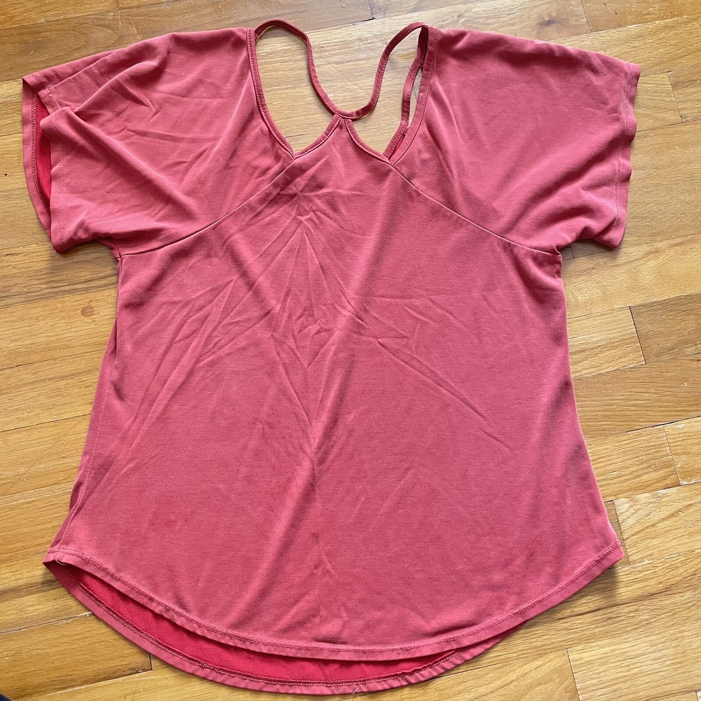 Daytrip Buckle Short Sleeve Shirt Blouse Women’s Size Small Criss Cross Back. Has a very small snag like flaw. Please See Pictures.