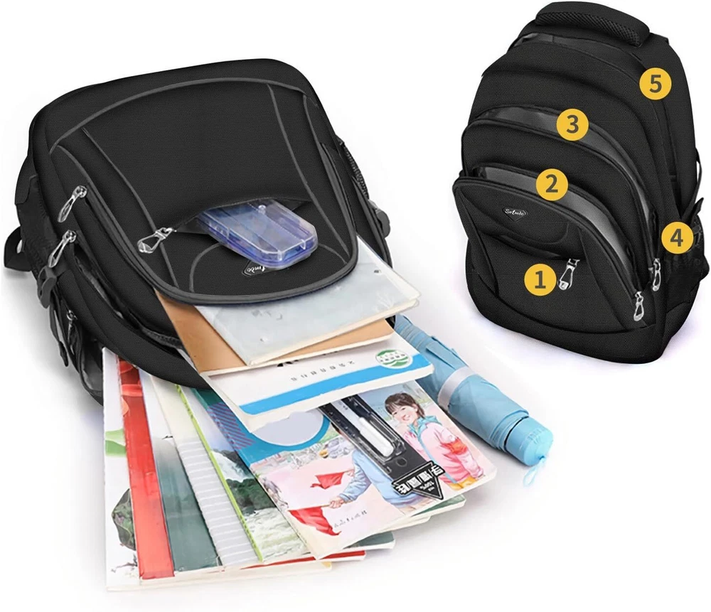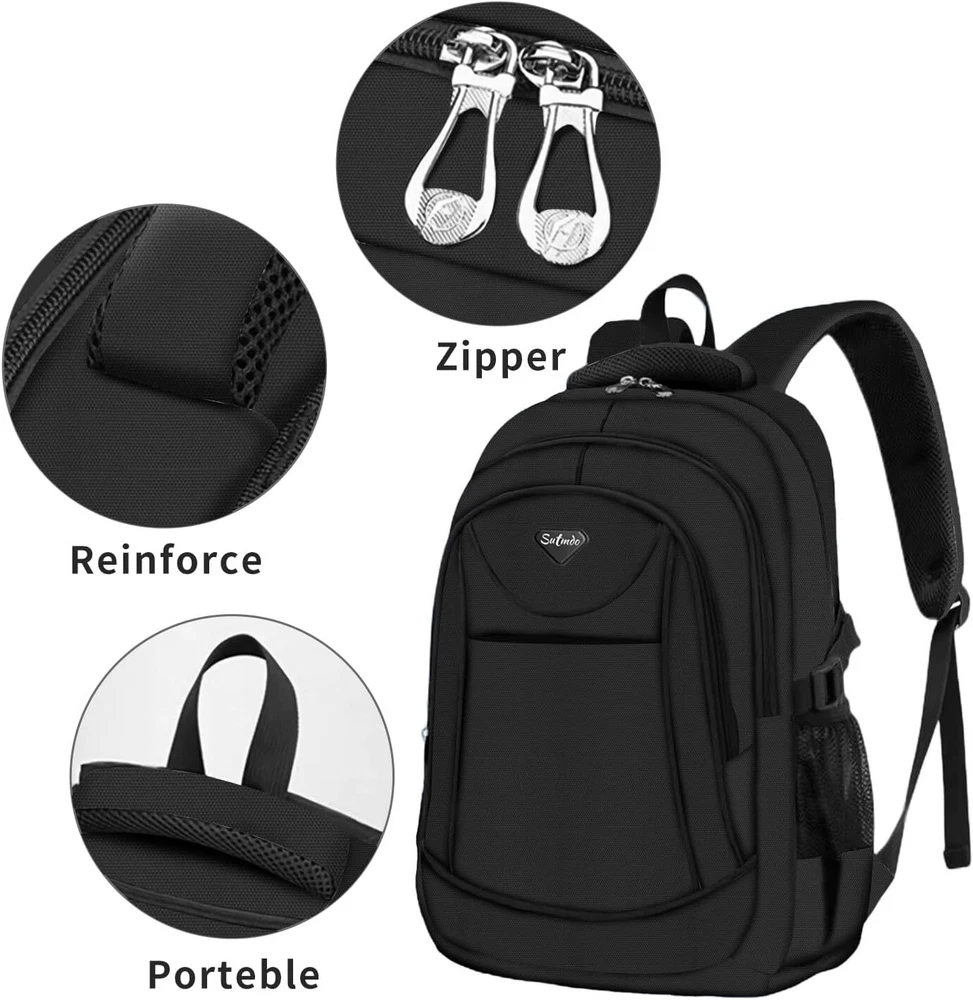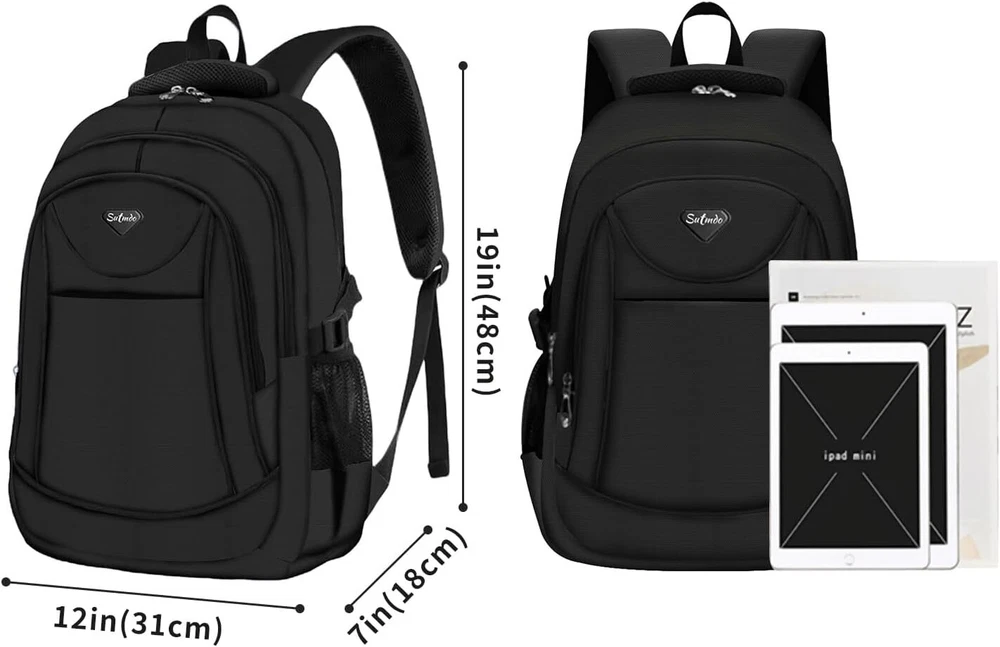 Casual Lightweight Backpacks for Boys & Girls, School Bookbags, 15 211hei Product Details Product Dimensions: 2 x 2 x 2 inches Item Weight: 1.19 pounds Department: Unisex Child Manufacturer: 211 Country of Origin: China Item model number: 211 Age Range Description: Kid Number Of Items: 1 Units: 1 Count Capacity Total: 2 Liters Material:Waterproof lightweight anti-scratch soft polyester, nylon lining, breathable mesh back panel, smooth dual metal zippers. The zipper of main compartment with double metal sliders and metal sliders have rope, easy to closed Interior Structure: 19" x 12" x 7" (Length*width*high), weight:1.2LB. 2*side pockets, 2*front pocket, 1*inner zipper pocket, 2*inner organizer pockets, 1* laptop/tablet compartment Lightweight: The backpack is made of durable water-resistant polyester which is lightweight and easy to clean. The adjustable padded shoulder straps offer support and comfort while the adjustable chest strap stabilizes the load throughout the day's activities. Large Capacity: This backpack Easily fits a lunch box, extra clothing, books,snacks, and small treasures; Nice gift for your friends, classmates and others, ages three and above Sutmdo is the brand for the active and casual. With the motto to keep things simple and neat Sutmdo offers an assortment of accessories and bags for everyday use. We seek to deliver premium quality designs. The Sutmdo classic unisex school backpacks are made of superior quality polyester. Polyester is the popular and ideal lightweight material for ultra-strong and heavy duty backpacks. Polyester material is heat resistant, making it suitable for outdoor use. In terms of durability, polyester is resistant to shrinking and stretching. Thus, it is also wrinkle-resistant. Polyester is genuinely a resilient material perfect for backpacking. Reinforced bottom and high detailing. This ensures that the base of the school backpack is durably covered. The added reinforcement protects the backpack.Suitable for ages three and above