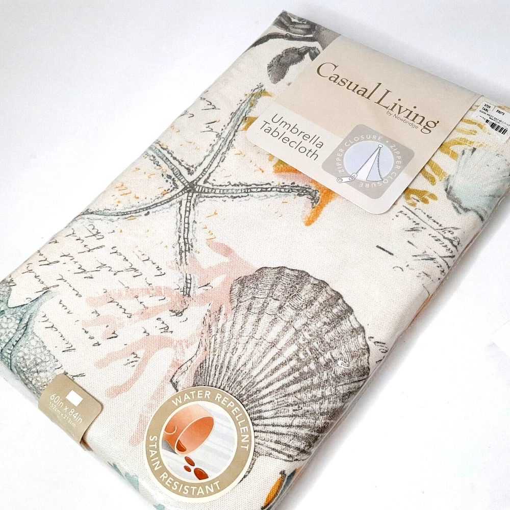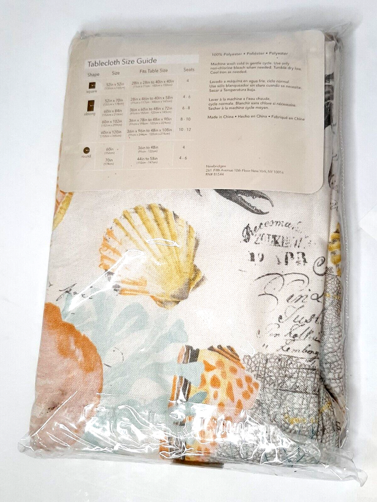 Type:TableclothBrand:NewbridgeColor:MulticolorMaterial:100% PolyesterShape:RectangularRoom:PatioUPC:Does not applygtin13:Does not applyTheme:BeachPattern:ShellsStyle:Contemporary