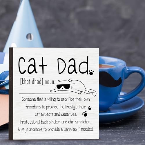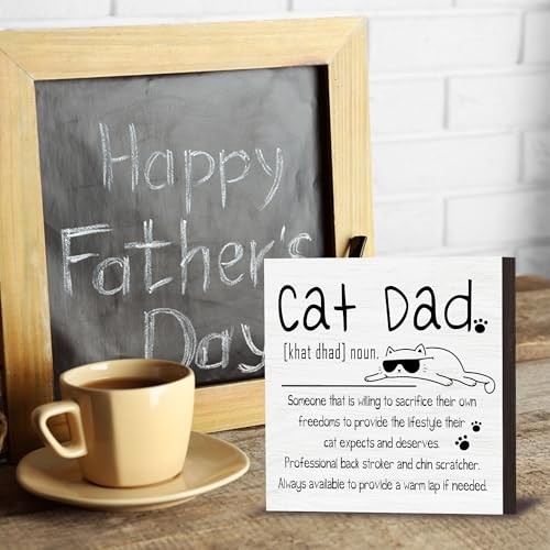 Wooden Cat Dad Sign - Unique Gift for Men, Birthday or Christmas Home Decor