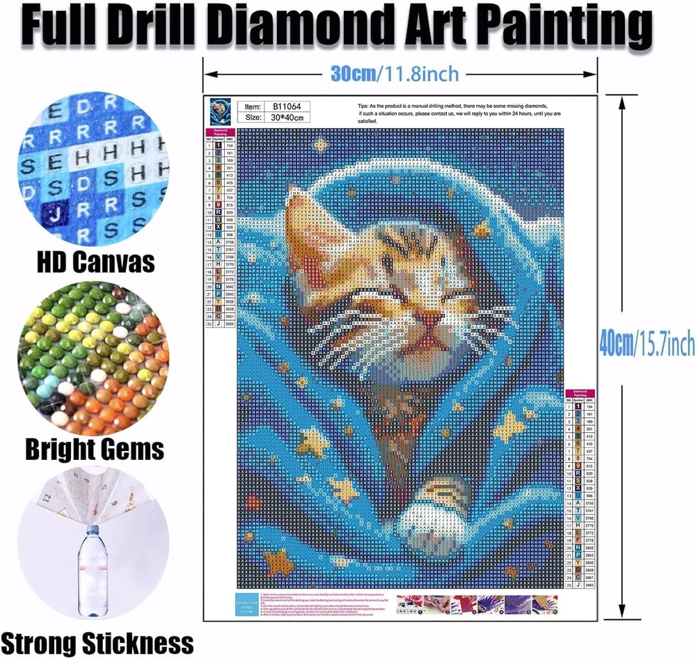 Art Craft Kit Type: Diamond Painting Kit Material: Canvas Brand: Does not apply Size: 5X5X0.5 Item model number: B11064 Included Components: diamond Type: Does not apply Item dimensions L x W x H: 5 x 5 x 0.5 inches Special Feature: Full drill diamond art painting gtin13: 7445009668609 Age Range (Description): Adult Product Dimensions: 5 x 5 x 0.5 inches Paint Type: Decorative Country of Origin: China Seasons: All Seasons Number of Pieces: 1 Color: Cat-3 Style: Art Deco UPC: 7445009668609 Cartoon Character: Cat Item Weight: 5 ounces Model Name: B11064 Theme: Cat