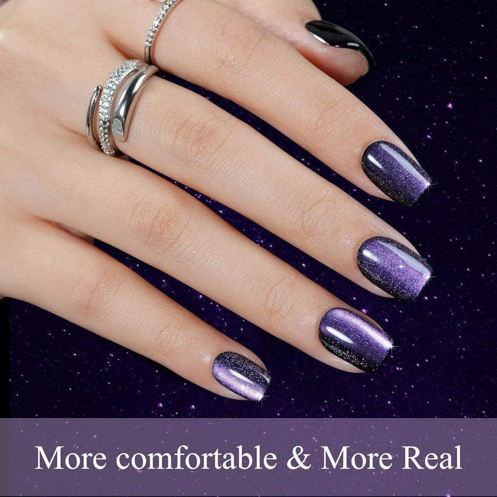 $ 18.48Glamermaid Press-On Toenails Spring Summer Black Cat Eye Purple Handmade False Nails