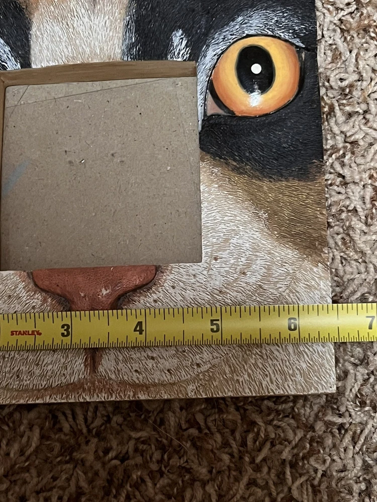Cat Face Picture Frame Size 3x3 Picture 3D Face Kitty Cat Gold Eyes. Cat Face Picture Frame Size 3x3 Picture 3D Face Cat Gold Eyes. Really cute frame for cat lovers to show off your precious feline!!! No damage noted to frame. All clothing items cleaned per eBay standards
