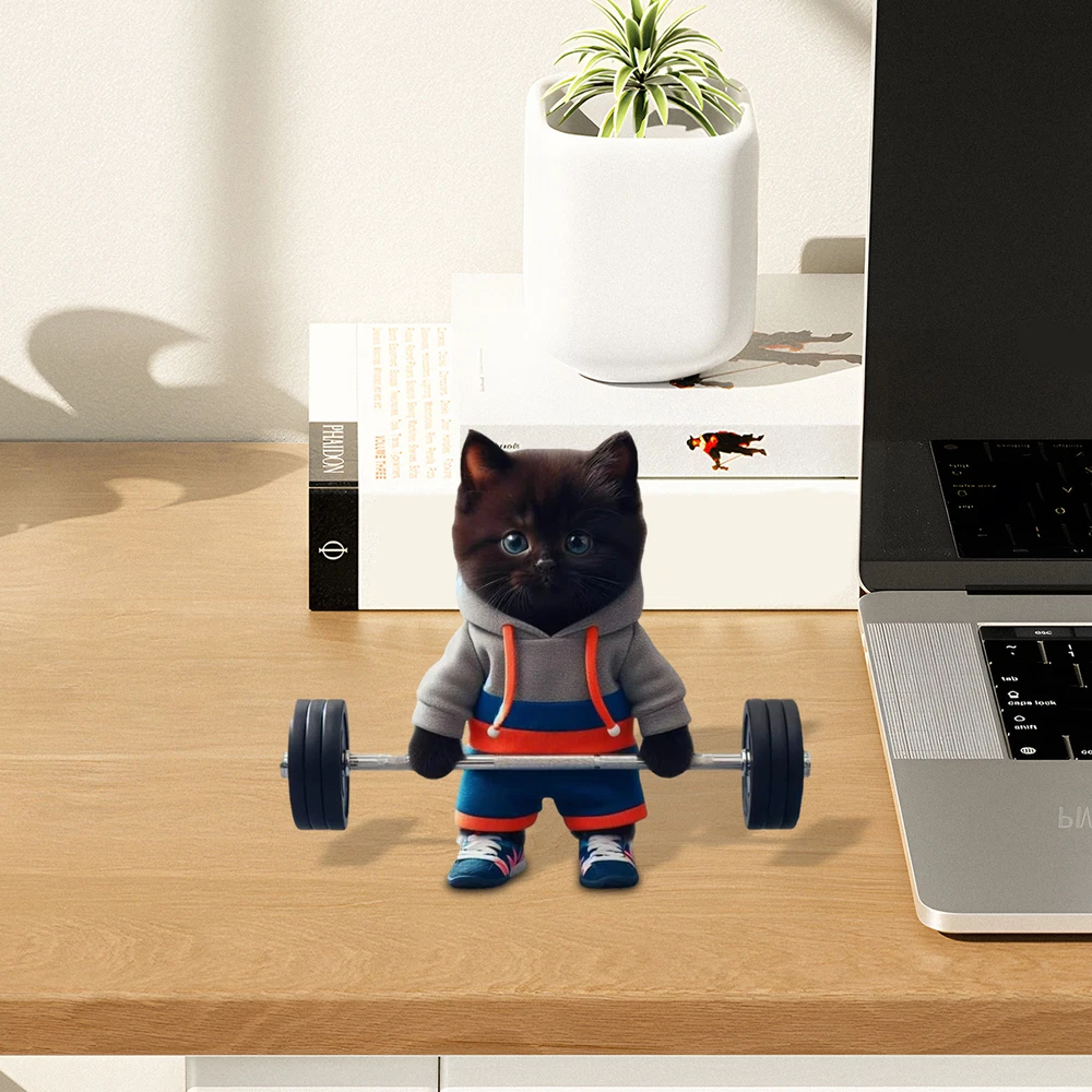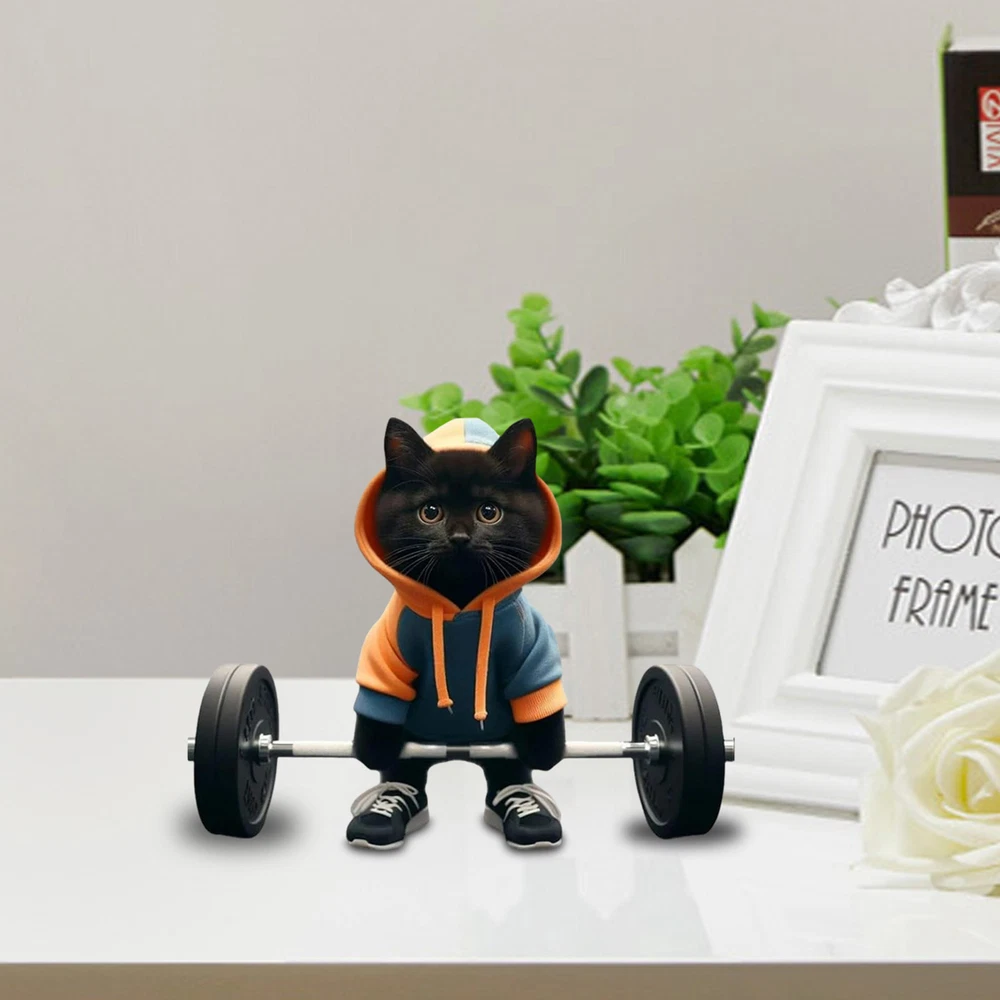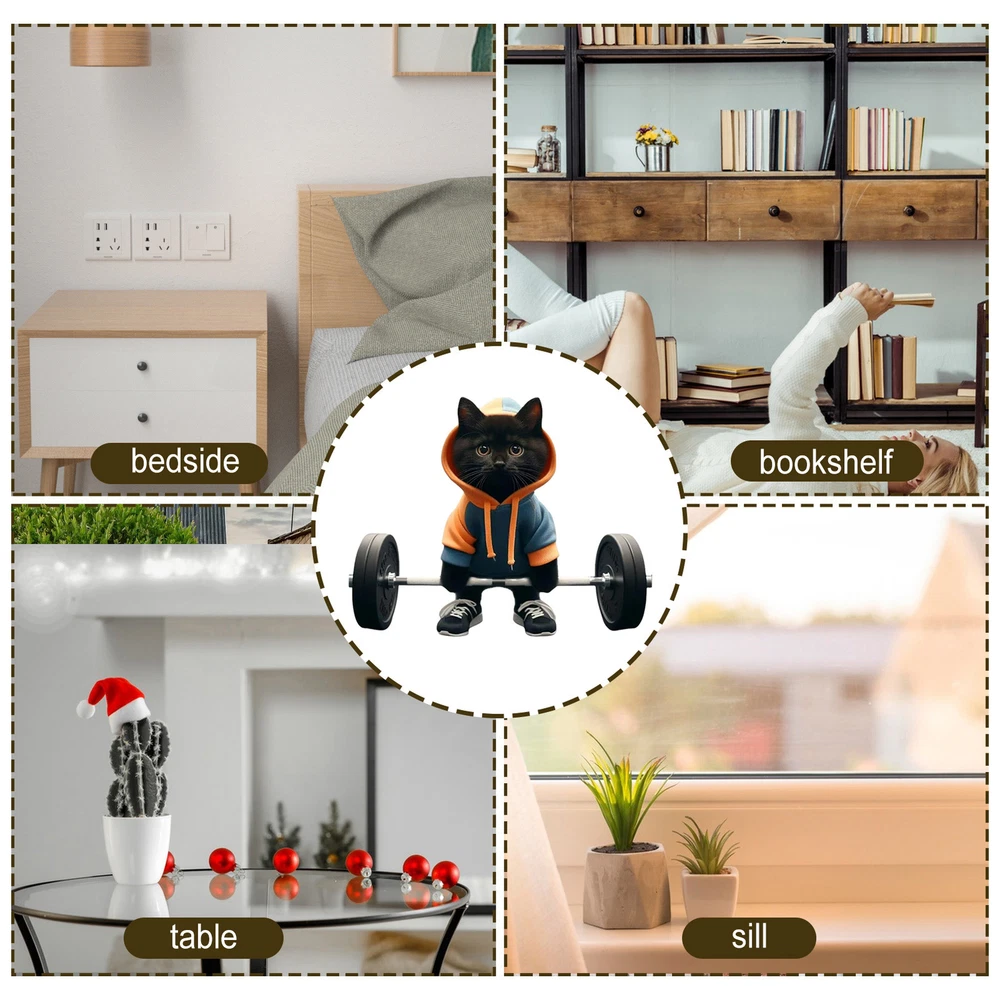 Bullet Points: Enchanting Elevations: This barbell cat statue in unique black finish is a creative enhancement to elevate your home decor. Its charming design adds a touch of cuteness to any space, making it an enchanting statement piece and perfect gift for cat lovers. Superior Material: Made of high-quality materials that are wear-resistant, environmentally friendly, safe and odorless, these cat statues are sturdy and durable, not easy to deform or damage. Multi-Functional Decoration : Add a touch of sophistication to your home decor with our statue that can be displayed on any surfaces like shelves, mantels, tables, or gardens. Their ability to match with any decor will bring warmth and color to your living area. Symbol of Feline Devotion : These well-crafted cat statues are more than just ornaments; they symbolize the love and companionship that cats bring to your life, with fine details that showcase their elegance and independence; they are also comfortable to the touch and fade-resistant. Good Presents for Friends: These cat statues home decor make for a special memento to show appreciation for friends or family who love felines. Ideal for birthdays, holidays, or any occasion, they're a unique way to express care and affection. Looking for a unique and multi-functional decoration for your home or office? Our Cat Sculptures and Statues are perfect for any cat lover! With fine details and a sturdy, durable design, these figurines are sure to impress. Whether you're looking to spruce up your living room or want to surprise a friend or family member who loves cats, our sculptures are the perfect choice. Specification: Product Name: Barbell Cat Figurine Product size: about 12x12cm/4.72x4.72 inches Material: plush, latex Packing List: 1* Cat Figurine Note: Due to different lighting and screen settings, the item color may be slightly different from the picture. Due to different manual measurements, please allow a 1-2cm difference in size.