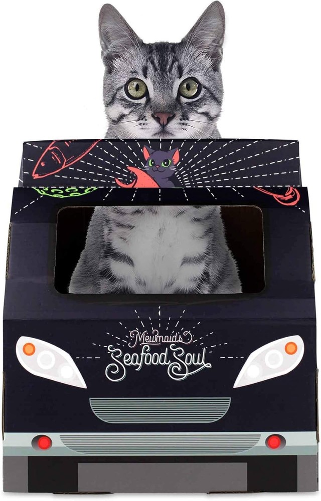 Cat House with Scratcher & Catnip Included - Food Truck Product Details Item Weight: 1.76 pounds Manufacturer: American Cat Club Item model number: ACC2038 Item Package Dimensions L x W x H: 15.47 x 11.06 x 3.19 inches Item Dimensions LxWxH: 36 x 48 x 36 inches Item Weight: 0.8 Kilograms Brand Name: American Cat Club Target Audience Keyword: house-cats, Cats Directions: Included on package Model Name: Food Truck Color: Food Truck Cat House Material: Cardboard Age Range Description: All Life Stages Care Instructions: Hand Wash Number of Items: 1 Style: Food Truck Breed Recommendation: All Breed Sizes Included Components: Cat House, Catnip Specific Uses for Product: Active, Behavior, Indoor, Coat Product Dimensions : 36 x 48 x 36 inches; 1.76 Pounds Item model number : ACC2038 Manufacturer : American Cat Club Brand: American Cat Club Product Dimensions: 36"D x 48"W x 36"H Cardboard cat house 2 in 1 with scratching board interior. Private place for your cat to rest and play Catnip included sprinkle some catnip on the cardboard while introducing the pad to a cat to entice your cats to scratch Cats love this pet bed house. Interior den-like hiding space for napping promotes nesting instinct. Promotes Paw health: The scratching motion of their feet keeps their paws healthy and strong, especially important to kittens, Adult and active pets Keep cats entertained and off of furniture. Easy to assemble all instructions and parts included When not in use, the cat house can be collapsed into a flat, compact size for out-of-the-way storage Give kitty a relaxing place to play and hide with this cardboard Cat House. When not in use, the cat house can be collapsed into a flat, compact size for out-of-the-way storage. Catnip included Corrugated scratching surface Durable materials