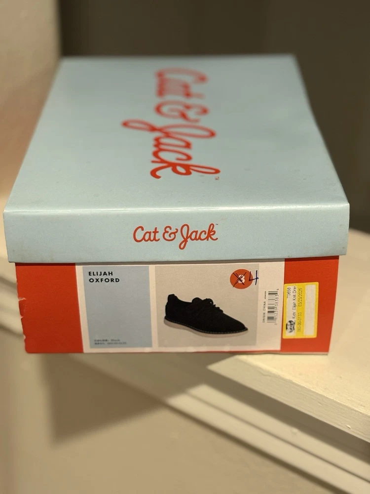 Closure: Lace Up Character: Boy Type: Dress Theme: Cat gtin13: 085239383889 US Shoe Size: 4Y Department: Boys Brand: Cat & Jack Product Line: Cat&Jack Fabric Type: Knit Model: Elijah Color: Black Style: Oxford Toe Shape: Pointed Toe Occasion: Casual Performance/Activity: Walking UPC: 085239383889
