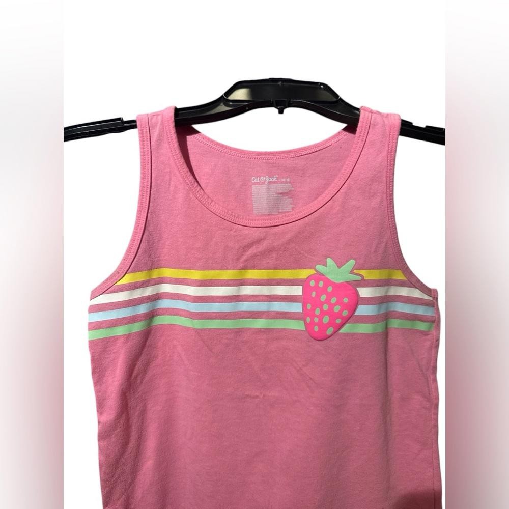 This adorable Cat & Jack Girls’ Pink Strawberry Tank Top is perfect for adding a playful touch to any summer wardrobe! Featuring a vibrant pink color, cheerful multicolor stripes, and a cute strawberry graphic, this tank top is both stylish and comfortable. Made from 60% cotton and 40% recycled polyester, it’s soft, breathable, and eco-friendly. Ideal for casual outings, beach days, or layering under cardigans, this tank top is versatile and trendy. • Brand: Cat & Jack • Size: Large (10/12) • Material: 60% Cotton, 40% Recycled Polyester • Color: Pink with multicolor stripes and strawberry graphic • Condition: Excellent pre-owned condition (no stains or tears) Care Instructions: Machine wash cold with like colors. Tumble dry low. Do not iron on print. Add this fun piece to your child’s wardrobe today! Measurements: measured flat Pit to pit 14” Length shoulder to hem 20”