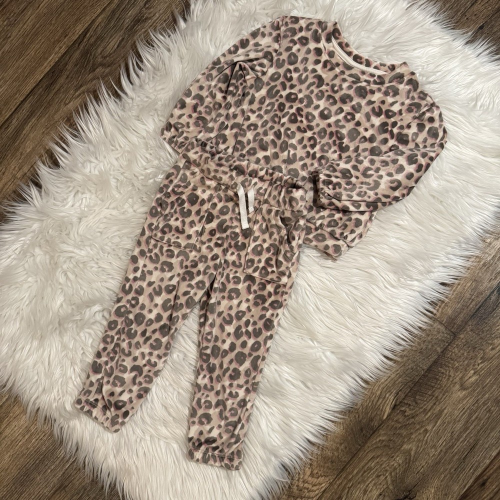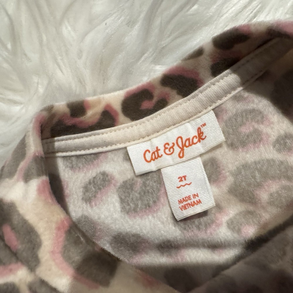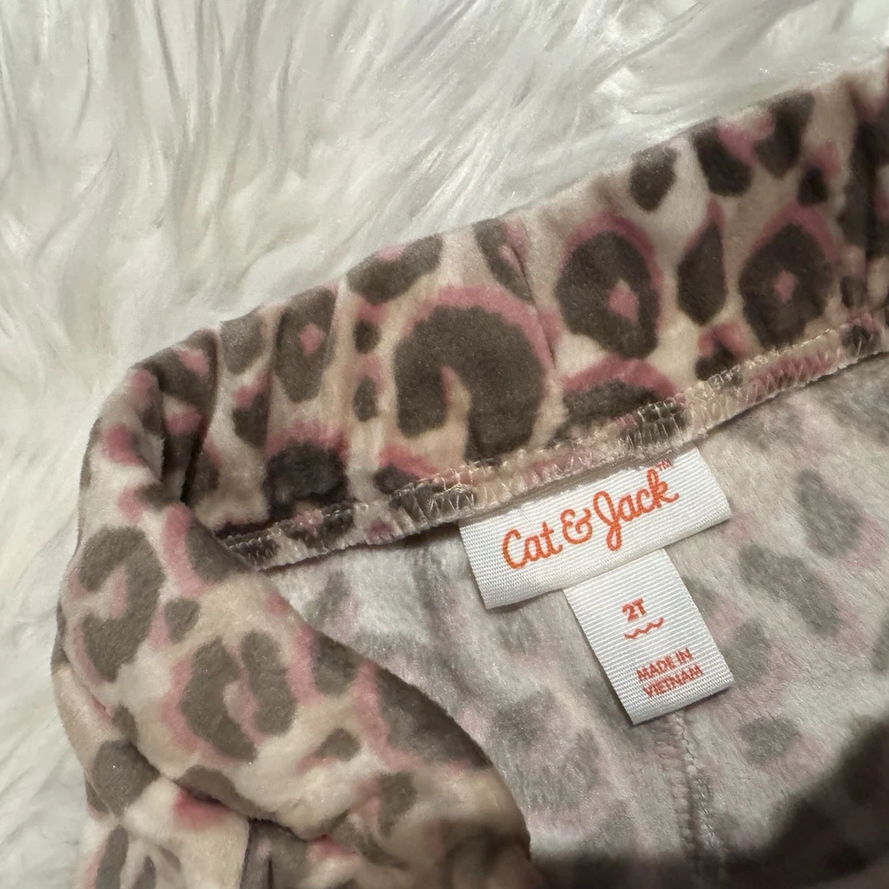 Adorable Cat & Jack velour leopard lounge set in size 2T. This cozy 2-piece outfit includes a soft velour long-sleeve sweatshirt and matching jogger pants. Super comfortable, warm, and cute — perfect for fall, winter, daycare, and everyday wear. The velour fabric gives it a plush feel and a stylish look toddlers love! Smoke & Pet Free Home