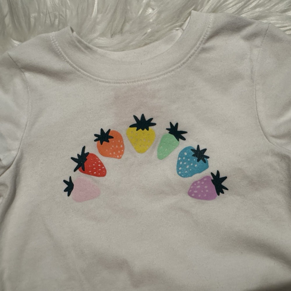 Cat & Jack Toddler Girl 2 Piece Tee & Shorts Set Size: 18 Months Cute colorful fruit tee- Cat & Jack Purple ruffle edges shorts- Garanimals ( non functional drawstring) Gently used- no stains or tears Smoke & Pet Free Home