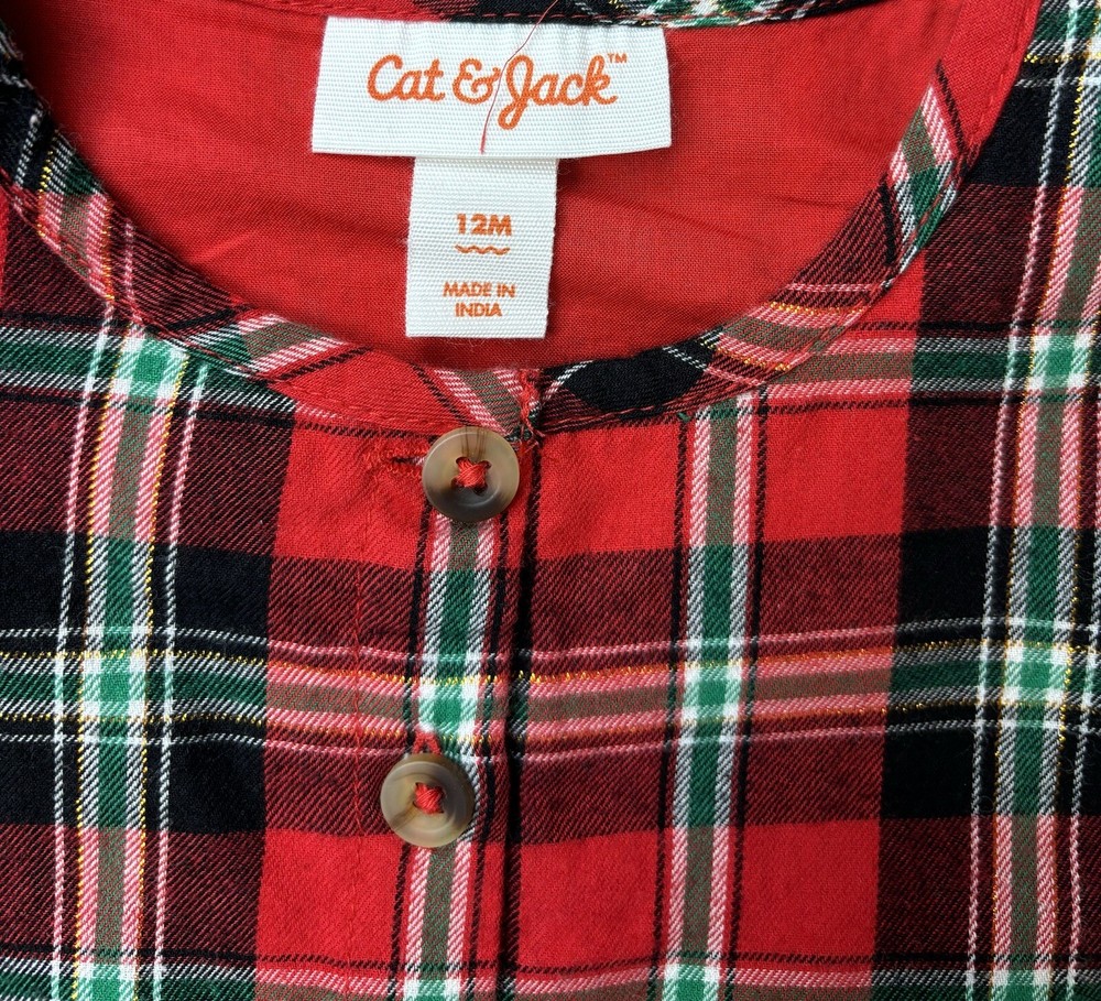 Brand: Cat & Jack Closure: Button Style: Fit & Flare Pattern: Plaid Theme: Christmas Season: Fall, Winter Fabric Type: Blended Fabric gtin13: 0196365733049 UPC: 0196365733049 Size: 12 Months Dress Length: Short Occasion: Casual, Party Color: Red Material: Cotton Sleeve Length: Long Sleeve Department: Girls