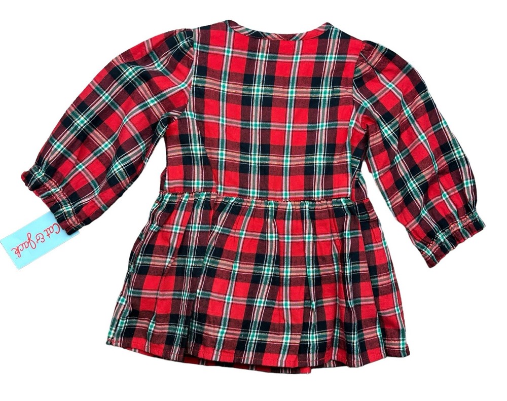 Cat & Jack Toddler Girls Size 12M Red Green Black Plaid Long Sleeve Dress NWT