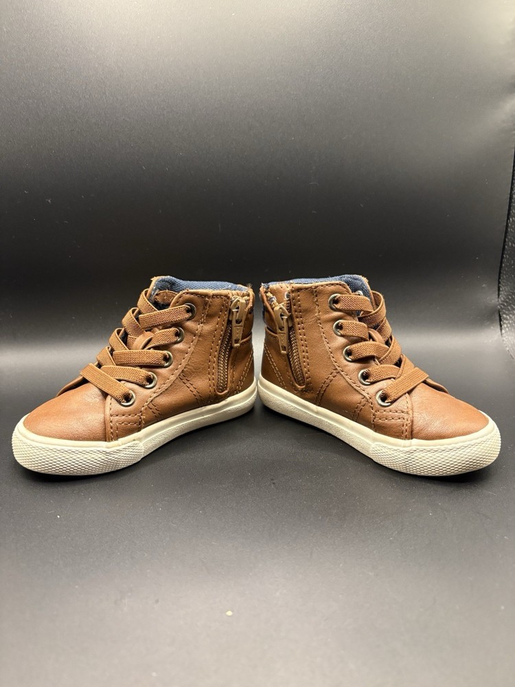 The Cat & Jack size 5 Toddler Boy Shoe is a stylish and practical choice for your little one. Featuring a solid brown color with a strap accent, these casual sneakers are perfect for everyday wear during the summer, fall, and spring seasons. Made of faux leather, they offer comfort and durability for walking activities. The brand Cat & Jack is known for its quality, making these shoes a reliable option for your toddler boy's wardrobe.