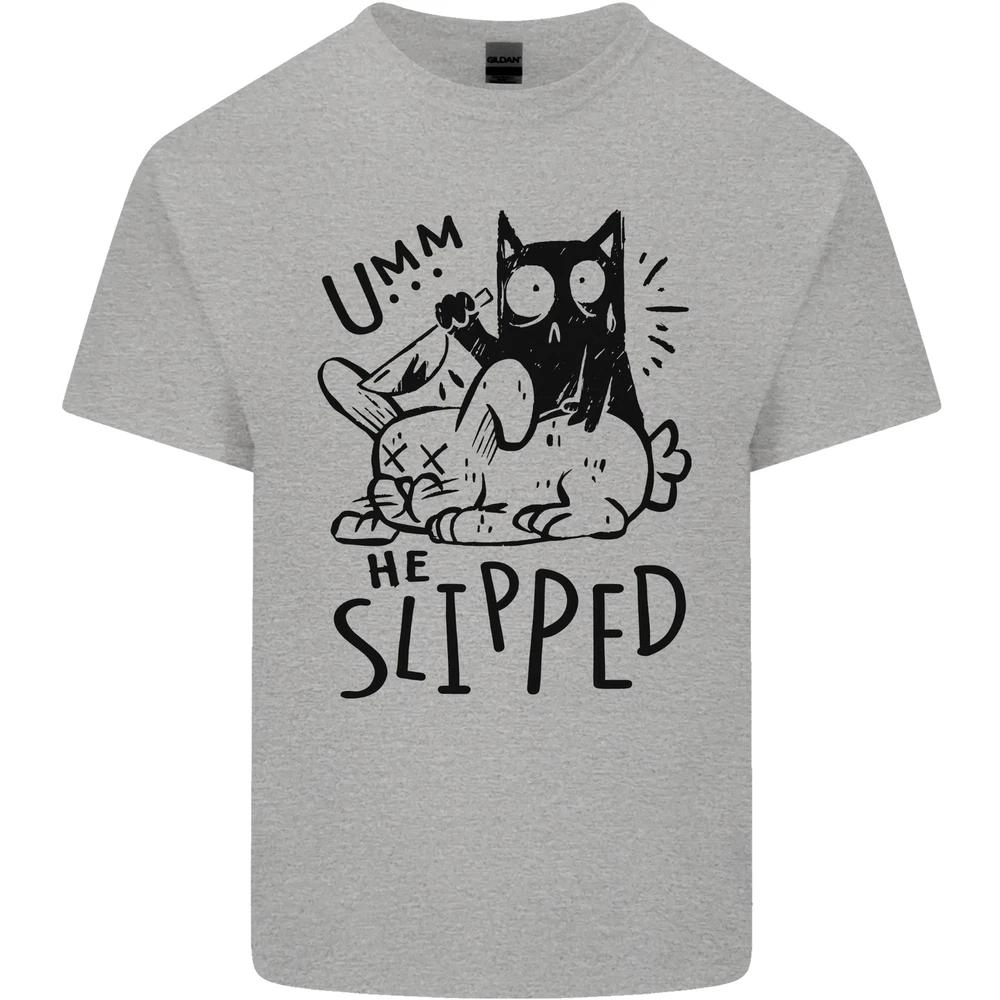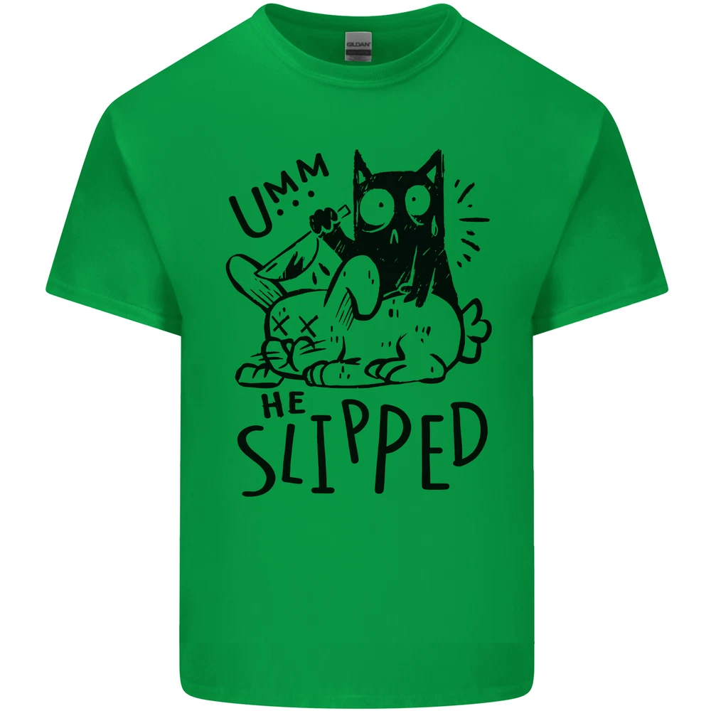 Cat Kills Dog He Slipped Funny Mens Cotton T-Shirt Tee Top