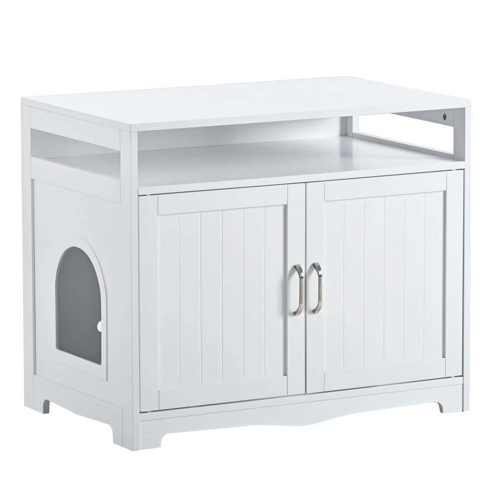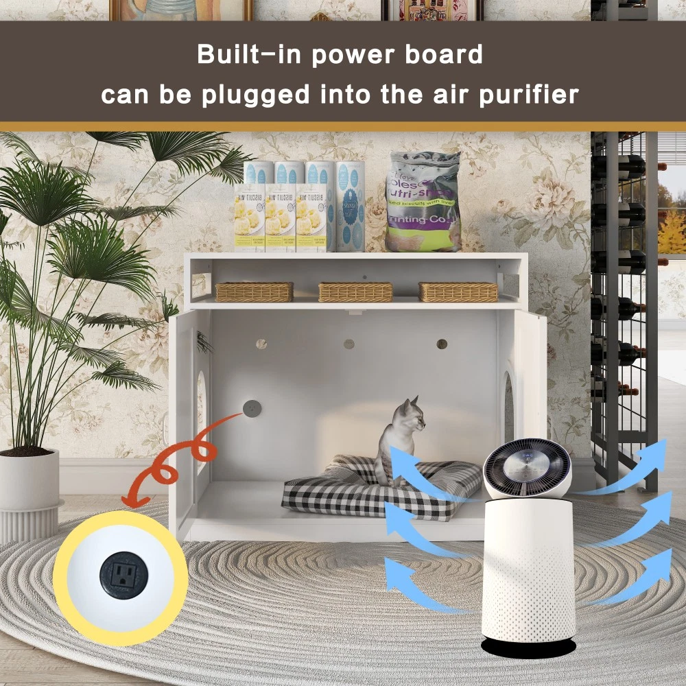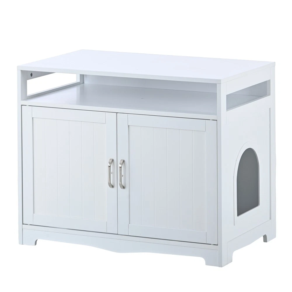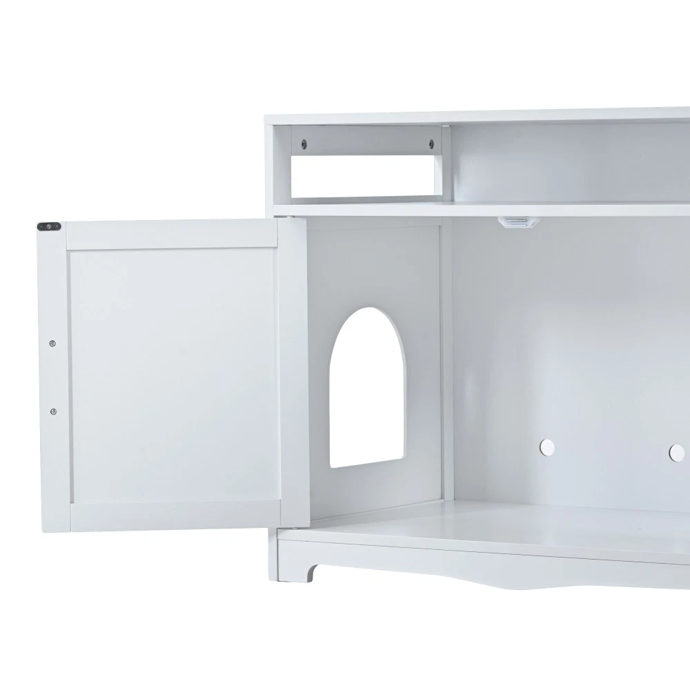 Cat Litter Box Enclosure Furniture (White/Walnut) - Multi-Functional Hidden Litter Box House with Built-in Plug, 2 Doors, Storage Bench & Side Table for Indoor Cats ✨ Elevate Your Home & Pamper Your Feline Friend! ✨ Tired of unsightly litter boxes ruining your home decor? Our Large Wooden Litter Box Enclosure is the perfect solution—blending seamlessly with your interior while providing a private, comfortable space for your cat. With built-in storage, a convenient plug, and dual entrances, it’s designed for both you and your furry companion’s ultimate convenience. 🌟 Key Features All-in-One Multi-Functional Design : Hides your cat’s litter box neatly, creating a private potty area. Equipped with an internal plug, you can easily place an air purifier to keep the space fresh and odor-free. It also doubles as a cozy cat house for napping, a storage cabinet for pet snacks/toys, and even a stylish side table or nightstand—maximizing space utilization in your home. Spacious Storage & Tabletop : Features 2 magnetic doors and an internal empty shelf, plus a wide tabletop—plenty of space to store cat food, toys, litter scoops, or display your small home decor. Keep your living space organized and clutter-free. Premium Material & Sturdy Construction : Crafted from high-quality MDF boards with exquisite craftsmanship, this enclosed litter box house is durable, wear-resistant, and deformation-proof—able to withstand cats climbing up and down. The countertop and bottom cabinet support up to 80 lbs, while the internal shelf holds up to 40 lbs, ensuring long-lasting use. Dual Entrances for Ventilation & Accessibility : Two kitty-sized holes on both sides allow your cat to come and go freely. These openings also promote excellent ventilation to reduce odors and let soft light in, creating a comfortable environment for your cat. Additionally, they effectively prevent dogs from accessing the litter box. Three small holes on the back panel further enhance light penetration for a brighter interior. Easy Assembly & Maintenance : The MDF boards feature UV painting, making cleaning a breeze—just wipe with a damp cloth. Comes with a detailed, step-by-step assembly instruction manual, so you can put it together easily and enjoy the fun of building a special space for your feline friend. Magnetic doors open and close smoothly for convenient access to clean the litter box. 📐 Product Specifications Parameter Details Color White / Walnut (Please select your preferred color) Material High-Quality MDF Assembled Dimensions 31.50" (L) x 20.00" (W) x 26.00" (H) Product Weight 46.30 LBS Package Dimensions 35.83" (L) x 22.44" (W) x 5.71" (H) Package Weight 51.26 LBS Origin China 🛡️ Trusted After-Sales Guarantee We stand behind the quality of our products! Enjoy 1-Year Quality Warranty and 30-Day Free Return & Exchange policy. If you have any questions about assembly, use, or product quality, please feel free to contact us—our professional customer service team will respond to you within 24 hours and provide you with a satisfactory solution. 📦 What You Get 1 x Cat Litter Box Enclosure (All Parts Included) 1 x Detailed Assembly Instruction Manual Add this versatile litter box enclosure to your cart today—give your cat a private, comfortable space and keep your home clean and stylish!