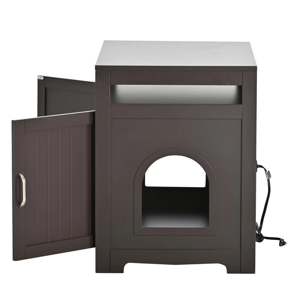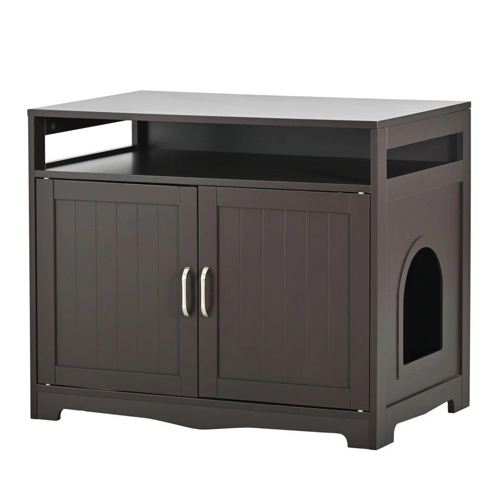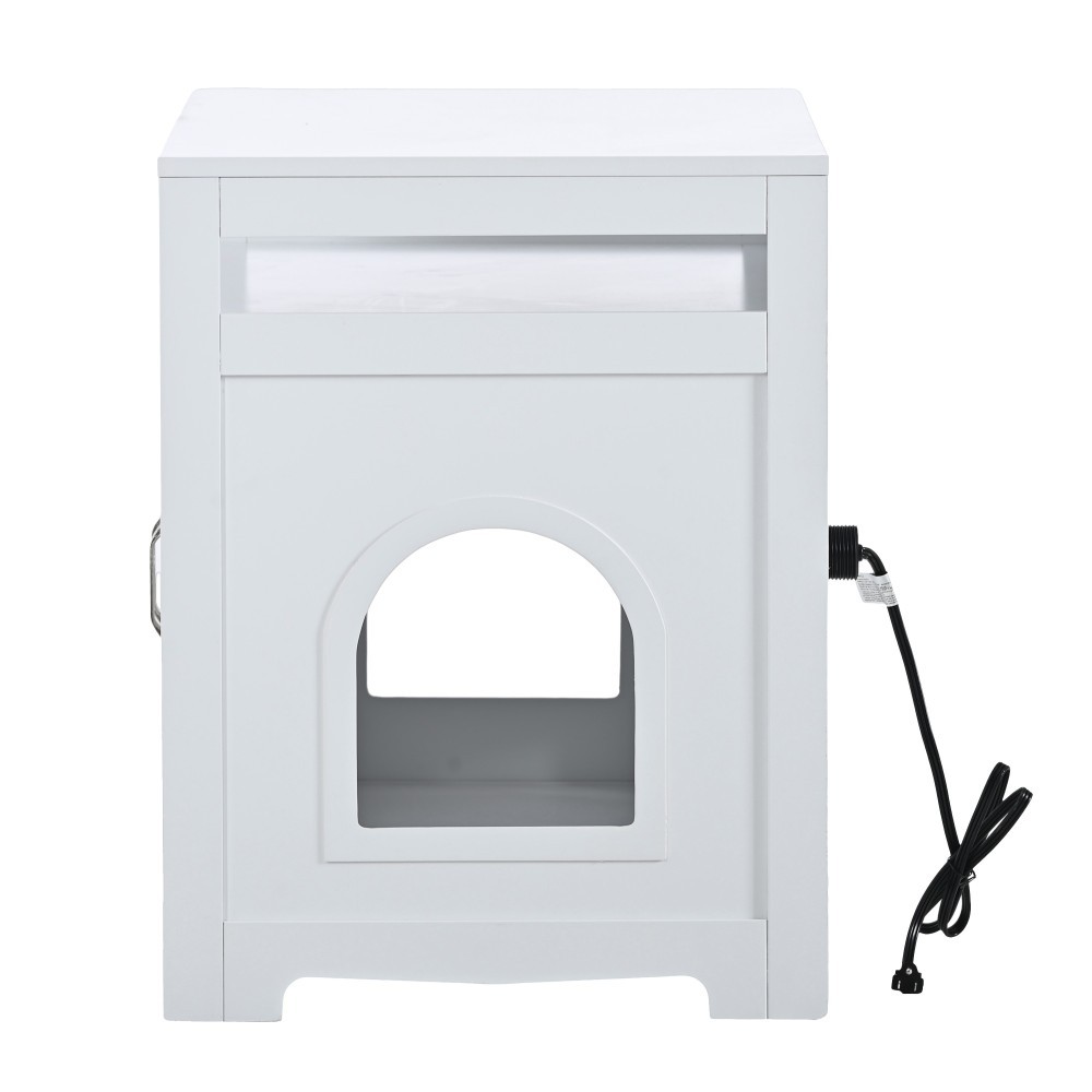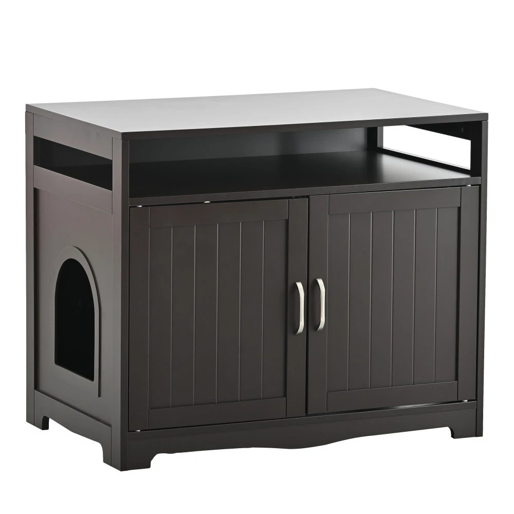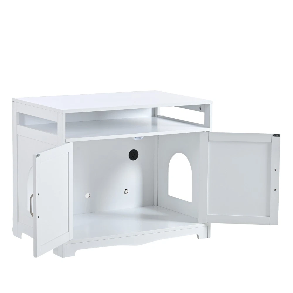 Cat Litter Box Enclosure Furniture (White/Walnut) - Multi-Functional Hidden Litter Box House with Built-in Plug, 2 Doors, Storage Bench & Side Table for Indoor Cats ✨ Elevate Your Home & Pamper Your Feline Friend! ✨ Tired of unsightly litter boxes ruining your home decor? Our Large Wooden Litter Box Enclosure is the perfect solution—blending seamlessly with your interior while providing a private, comfortable space for your cat. With built-in storage, a convenient plug, and dual entrances, it’s designed for both you and your furry companion’s ultimate convenience. 🌟 Key Features All-in-One Multi-Functional Design : Hides your cat’s litter box neatly, creating a private potty area. Equipped with an internal plug, you can easily place an air purifier to keep the space fresh and odor-free. It also doubles as a cozy cat house for napping, a storage cabinet for pet snacks/toys, and even a stylish side table or nightstand—maximizing space utilization in your home. Spacious Storage & Tabletop : Features 2 magnetic doors and an internal empty shelf, plus a wide tabletop—plenty of space to store cat food, toys, litter scoops, or display your small home decor. Keep your living space organized and clutter-free. Premium Material & Sturdy Construction : Crafted from high-quality MDF boards with exquisite craftsmanship, this enclosed litter box house is durable, wear-resistant, and deformation-proof—able to withstand cats climbing up and down. The countertop and bottom cabinet support up to 80 lbs, while the internal shelf holds up to 40 lbs, ensuring long-lasting use. Dual Entrances for Ventilation & Accessibility : Two kitty-sized holes on both sides allow your cat to come and go freely. These openings also promote excellent ventilation to reduce odors and let soft light in, creating a comfortable environment for your cat. Additionally, they effectively prevent dogs from accessing the litter box. Three small holes on the back panel further enhance light penetration for a brighter interior. Easy Assembly & Maintenance : The MDF boards feature UV painting, making cleaning a breeze—just wipe with a damp cloth. Comes with a detailed, step-by-step assembly instruction manual, so you can put it together easily and enjoy the fun of building a special space for your feline friend. Magnetic doors open and close smoothly for convenient access to clean the litter box. 📐 Product Specifications Parameter Details Color White / Walnut (Please select your preferred color) Material High-Quality MDF Assembled Dimensions 31.50" (L) x 20.00" (W) x 26.00" (H) Product Weight 46.30 LBS Package Dimensions 35.83" (L) x 22.44" (W) x 5.71" (H) Package Weight 51.26 LBS Origin China 🛡️ Trusted After-Sales Guarantee We stand behind the quality of our products! Enjoy 1-Year Quality Warranty and 30-Day Free Return & Exchange policy. If you have any questions about assembly, use, or product quality, please feel free to contact us—our professional customer service team will respond to you within 24 hours and provide you with a satisfactory solution. 📦 What You Get 1 x Cat Litter Box Enclosure (All Parts Included) 1 x Detailed Assembly Instruction Manual Add this versatile litter box enclosure to your cart today—give your cat a private, comfortable space and keep your home clean and stylish!