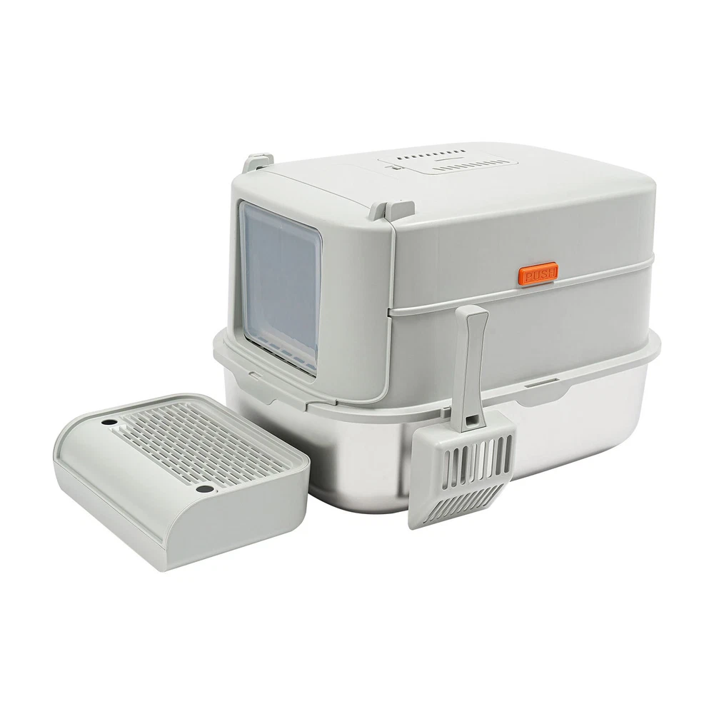 Cat Litter Box Large Litter Box for Big Cats Cat Litter Box with High Sides Description Description Are you looking for a cat litter box that can provide a comfortable and convenient experience for your cat? Then do not miss this! Its large capacity not only provides your cat with a spacious interior but also relieves your daily cleaning chores. Take it home now and enhance your cat's toilet experience! Key Features Last for Years: Made of excellent stainless steel , PP, and ABS, it is rustproof, wear-resistant, and impact-resistant, with a strong load-bearing capacity and high durability, not easy to deform, to ensure your long-term use. Large Capacity: The large 18.16-quart capacity litter pan allows you to add a large amount of litter at one time, which will last your cat roughly 30 days, effectively reducing the number of times you have to add litter and giving you peace of mind when you leave the house. Thoughtful Design: The built-in inverted plate and unique snap design with overlapping edges effectively prevent urine from leaking through the cracks, and also solve the problem of scattering cat poop when your cat digs. A sturdy 4.72-inch high-sided middle shell and a 5.12-inch top cover can 360° protection against litter splatter. An anti-splash pedal also prevents litter from being carried out by your cat and it features a raised design, making it ideal for short-legged and senior cats. User Friendly: It features an easy-to-assemble, 3-tier removable structure and is available in fully enclosed and semi-enclosed configurations. The fully enclosed setup prevents the spread of odors, effectively stops urine leaks, and provides privacy for your cat. The enclosed setup promotes ventilation, making it easier for you to clean. It features a deodorizing compartment for a bamboo charcoal bag (not included) to quickly absorb odors. Effortless Cleaning: The stainless steel litter pan's simple design makes it easy to rinse with water. In addition, the litter scoop allows you to scoop away cat poop quickly and easily. The inside of the footrest can hold a litter bag (not included), making it easy to remove loose litter and keep your floors clean and tidy. Assembly in a Breeze : The simple structure, complete accessories, and detailed English manual help you to assemble it quickly and firmly without easily falling off. Elegant Appearance: With a light gray cover and a silver basin, the overall look is low-key and stylish, adding elegance to home decoration. Multifunctional: The stainless steel pan has sturdy construction and seamless design, which is not easy to break and leak, so you can use it as a cat's bathtub, saving you money and time on additional purchases. Ideal Gift: Beautiful appearance and good practicality make it a great gift. You can give it to your family, friends, colleagues, etc. who have a cat. Customer Service: We aim to provide quality products and services. If you have any problems, please feel free to contact us. We will reply and solve the problem for you as soon as possible. Details Non-slip Pads: They can hold the litter box stable on the floor and prevent it from shifting and scratching the floor. Shovel Box: It allows you to store the cat litter scoop after each use while making it quicker and easier to access next time. Practical Cat Litter Scoop: It can be hung on the litter box for easy access and to avoid loss. It has a fine mesh structure so that even the smallest cat litter particles can be easily removed without falling through. Smooth Edges: The smooth and round edges make the product comfortable to use without scratching your cat's skin during her toilet or your hands when you move it. Application It is suitable for cats up to 22.05 pounds and you can place it in your living room, balcony, bathroom, pet store, and other places for use. Specification Color: Light Grey, Silver Style: Modern Assembly Required: Yes Mount Type: Freestanding Material: Stainless Steel, PP, ABS Capacity: 20L/ 18.16Qt Applicable Cat Weight: Below 10kg/ 22.05lbs Pan Size: 58*43.2*15cm/22.83*17*5.91in Medium Shell Height: 12cm/4.72in Top Cover Height: 13cm/5.12in Inlet Height: 20cm/7.87in Package Size: 60*44*19cm/23.62*17.32*7.48in Gross Weight: 4.8kg/10.58lbs Net weight: 4.56kg/10.05lbs Package Included 1* Stainless Steel Pan 1* Footboard 1* Top Cover 1* Medium Shell 1* Cat Litter Scoop 1* Non-slip Foot Pad Sticker 1* Shovel Box 1* English User Manual Notes Please check the style and size before purchasing. Please read the manual completely before installation and use, and pay particular attention to the safety instructions included. Please note that cat litter is not included in this product. After use, please replace the cat litter promptly. If there are multiple cats at home, the replacement cycle for cat litter can be proportionally shortened, with one cat taking about 30 days and two cats taking about 15 days. Regularly add cat litter to the pan, keeping the litter thickness at around 30-40mm. Please allow the slight color difference caused by the shooting light and 1-3cm error due to manual measurement and make sure you do not mind before ordering. Payment Delivery details Terms of sales About us Contact us Payment We accept ebay payment 。 Fees such as import duties, taxes are not included in the item price or shipping costs. These charges are the buyer's responsibility. Delivery details Shipping: 2-9 working days to: USA Terms of sales We maintain high standards of excellence and strive for hundred percent customer satisfaction. Feedback is very important to us. We hope that you contact us immediately before you give neutral or negative feedback, so that we can address your concerns. It is impossible to address issues if we do not know about them! About us Your satis faction is our ultimate goal. We work hard to earn your trust and future business. Our certified technicians have tested each item before shipping. The unit comes with 1 year limited warranty on all manufactur