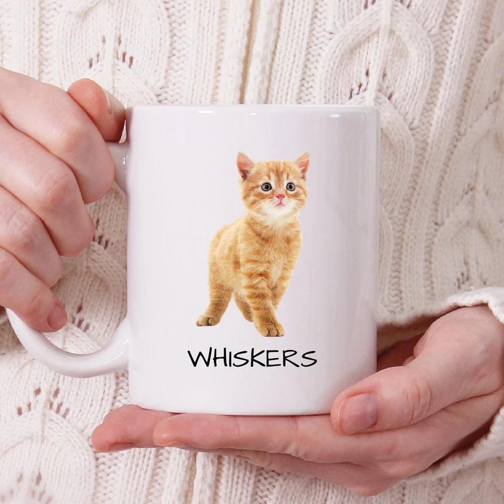 Cat Mug Personalized Adorable Ginger Cat Coffee Cup Custom Name Mug Tabby Cat Mug Cat Dad Customizable Mug For Cat Mom Cat Memorial Mug Product Details.. This high quality 11oz. ceramic white mug has a premium hard coat that provides crisp and vibrant color reproduction sure to last for years. Perfect for all hot & cold beverages. The highest quality printing possible is used. It will never fade no matter how many times you wash it. Material: 100% Ceramic. Print both sides. Dishwasher and Microwave Safe. High Gloss + Premium White Finish. Printed in the U.S.A. Personalized & Custom. We support personalized and custom mug to add custom, when placing an order, you can add notes to the "order note" in shipping address section. Also you can contact us directly via message. Shipping Info. Ready to ship in 1 to 2 business days, All products are made-to-order and proudly printed in the United States. Shipped by USPS and DHL, You will receive your order in 5-7 days. Replace & Refund. All products are defective during shipping broken, chipped will be replaced free of charge. You are not satisfied with the product, we will refund 100% money to you. If any other issues arise, please do not hesitate to message, we would be more than happy to assist you.