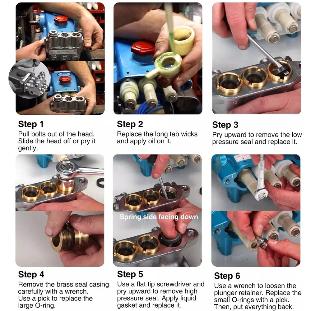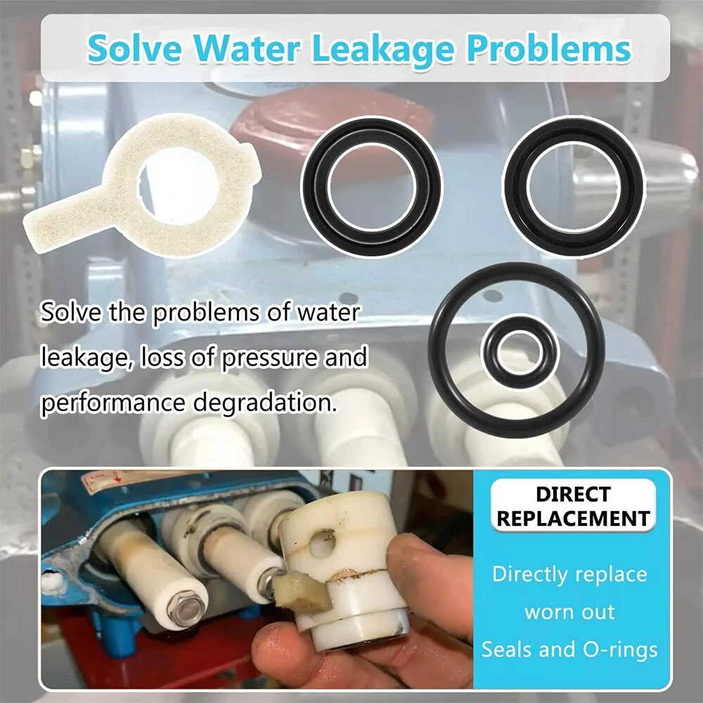 30623 Seal Kit Replacement For Cat Pump Model 30 31 34 35 310 340 350 310B 310S Features: 1.Solve Water Leakage Problems: Used to replace broken, damaged and worn seals and O-ring for CAT PUMP. You can effectively solve the problems of water leakage, loss of pressure and performance degradation. 2.Superior Material: Made of high quality Rubber, all seals and O-rings features with good oil resistance, corrosion resistance & wear resistance. 3.A direct replacement for the old or broken one. 4.No instruction is Included, Professional Installation is Recommended Specification: Condition: 100% Brand New Material: Rubber & oil absorbent cotton Color: As shown in the picture Replace part number: 30623 Fitment: This Repair Seal Kit perfectly fits for CAT Pump Pressure Washer Pump 30, 31, 34, 35, 310, 310B, 310S, 310W, 340, 340S, 340B, 340W, 350, 350S, 350B, 350W Models, 5 Frame Plunger Pumps Packing Including: 3PCS #43307 high-pressure seals with S seal 3PCS #43305 low-pressure seals with S-Spg seal 3PCS #14200 seal case o-rings 2PCS #17399 plunger retainer o-rings 3PCS #43302 long tab wicks