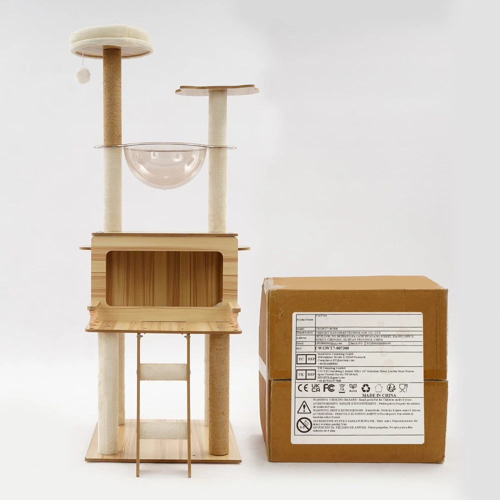 *WELCOME TO rongbigdealtrade - Your Trusted Destination!* Description This cat tree is made of premium materials for excellent durability. The rich structure is in line with cats' natural tendency to climb and jump, making it a good choice for cat activity centers. A comfortable cat house provides a warm resting space for your cat. It doesn't take up too much space for your cat to play comfortably. This cat tree adopts a three-dimensional interlocking fantasy structure, w hich greatly capture s the instinct of cats to ‘fly over the wall’! The climbing ladders, watchtowers, and cat houses are designed to meet the cat's instinctive needs for parkour, raiding, and climbing to the top, turning it into an exclusive sports paradise and hunting training ground for cats in minutes. This ‘happy tree’ occupies a small area, but can infinitely extend the dimension of a cat's joy in a limited space, so that even a small home can contain the entire universe of meow stars! Key Features Selected Materials: The premium veneered density boards, hemp ropes, flannelette, paper pillar, and plastic make it scratch-retardant, wear-retardant, terminal-retardant, and sturdy, providing a reliable place for cats to move and rest. Premium and Enduring: It is crafted from superior materials, including veneered density boards, hemp ropes, flannelette, paper pillar, and plastic, which ensures high strength and exceptional durability, and can prevent scratches or wear, offers robust sturdiness, and guarantees an extended lifespan. High Load-bearing Capacity: The thick rectangular base and sturdy columns ensure high load capacity (about 22.05 lbs) and excellent stability. It is not easy to wobble or tip over, even when cats jump freely on it. Sturdy Support You Can Trust: It has a strong load-bearing structure that allows larger cats up to 22.05 lbs to jump and climb, or for 3-4 smaller cats to play at the same time, creating an exclusive sturdy fortress for meowers. Whether it's a fat cat with a crazy output or an energetic kitten, this product will hold them all with confidence. Reasonable Design: The comfortable cat's house, clear space capsules, and multi-tier platforms allow your cat to rest and observe leisurely and comfortably while satisfying the cat's natural inclination to climb and jump. The scratching posts allow cats to sharpen their claws, preventing damage to furniture. A thoughtful hanging teaser ball allows cats to play happily and maintain a good mood. Exclusive Playground for Cats: The cosy cat house is like a nest in the clouds, where kittens can curl up into a ball of fur and start a cosy nap. T he clear capsule in the shape of a space capsule instantly transforms into a meow star's ‘observation box’, where the cat can lie down and overlook the daily life of human beings in 360°! The three-dimensional platform allows cats to unlock a variety of climbing and jumping positions. The paw pillar and climbing staircase are the ‘guardian knight’ of furniture to save your leather seats and curtains! It also has a sweet hanging teaser ball that swings with your cat's tap, instantly igniting the predatory nature and allowing your pet to play alone at home. Space-saving: It has a small footprint( 19.7*19.7 inches) and adopts a vertical design that won't take up too much space. You can place it freely in your room, living room, or balcony. Effective Use of Space: It makes full use of vertical space and reduces the footprint(19.7*19.7 inches) by increasing the height(57.9in). The three-dimensional structure allows it to become a ‘sky observation deck’ in the living room, or to be transformed into a ‘sunny cottage’ for cats on the balcony, providing multi-layer activity space for cats without taking up much space. Easy to Assemble: The simple structure, mortise and tenon joint construction, pre-drilled holes, a detailed English installation step-by-step diagram, and complete accessories allow you to quickly assemble it and start u sing it. Quick Setup: With its ingeniously simple design, mortise and tenon joint construction, precision pre-drilled holes, a clear step-by-step English assembly guide, and complete essential components neatly included, you’ll have it up and running quickly! Details Smooth Edges: This design can better protect the skin of your cat. Skin-friendly Edges: Smooth, rounded edges elevate the product’s style while safeguarding against sharp corners, making it both beautiful and safe to use. Slip-repellent Pads: They can be attached to the bottom of the base to prevent sliding and improve its stability in use. Grip-Locked Foot Pads: It is designed with efficient slip-repellent feet that can firmly grip the ground and provide stability for product use, making cats experience a truly solid sense of security. Application It is suitable for families, pet stores, cat coffee bars, living rooms, bedrooms, balconies, and other places where cats can interact and rest. Package Included 1* Cat Tree 1* English Diagram Other Accessories for Assembly Notes Please use it within the load-bearing range of the product. Please carefully check the size of the product you need before purchasing. Please allow the slight color difference caused by the shooting light and the 1-3cm error due to manual measurement, and make sure you do not mind before ordering. Payment Delivery details Terms of sales About us Contact us Payment We accept ebay payment 。 Fees such as import duties, taxes are not included in the item price or shipping costs. These charges are the buyer's responsibility. Delivery details Shipping: 2-9 working days to: USA Terms of sales We maintain high standards of excellence and strive for hundred percent customer satisfaction. Feedback is very important to us. We hope that you contact us immediately before you give neutral or negative feedback, so that we can address your concerns. It is impossible to address issues if we do not know about them! About us Your satis factio