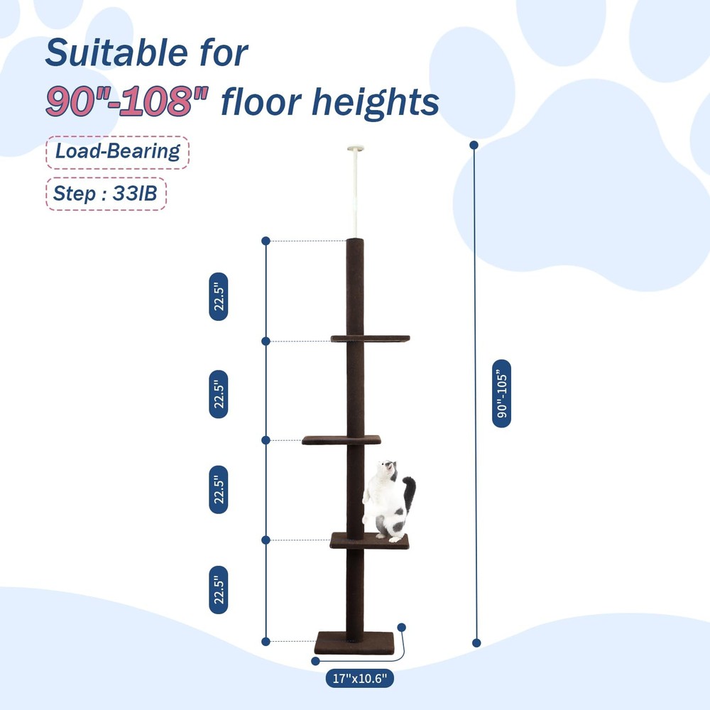 Cat Tree Floor to Ceiling 95-108" Tall Cat Tree Carpet Cat Tower Kitten Tree Sis